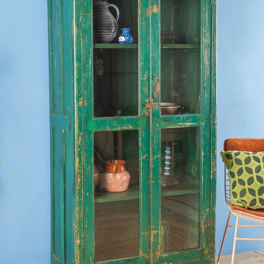 Bring rich colour and timeless charm into your home with this Green Vintage Glazed Cabinet. Crafted from wood, this elegant cabinet features two full-length glazed doors that create a beautiful and open space for displaying your treasured décor, glassware, or collectibles.