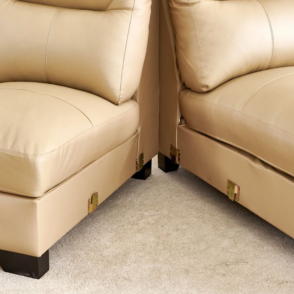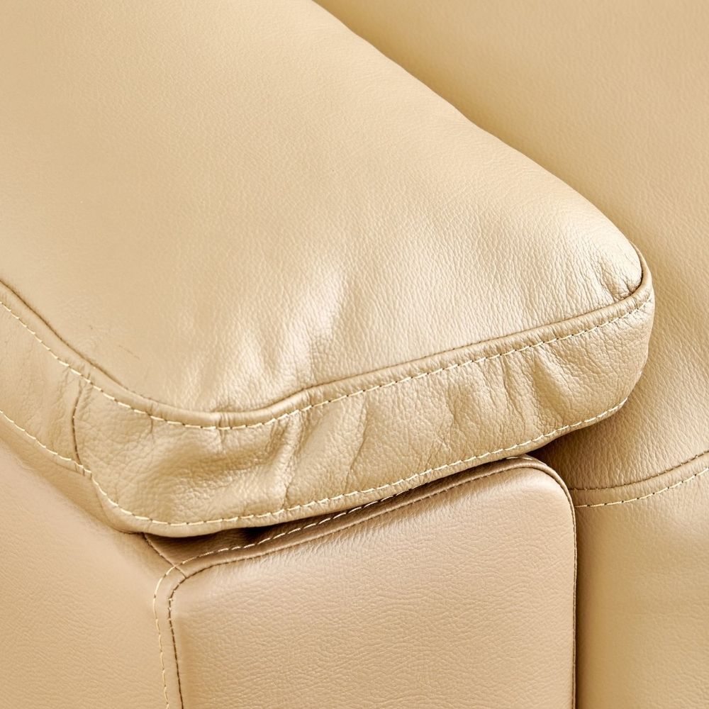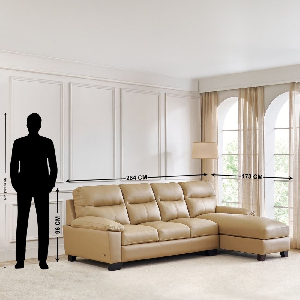 Half Leather 3-Seater Corner Sofa with Right Chaise – Beige
