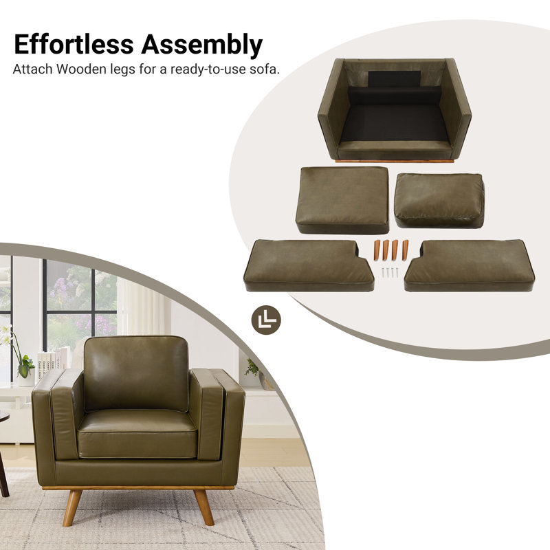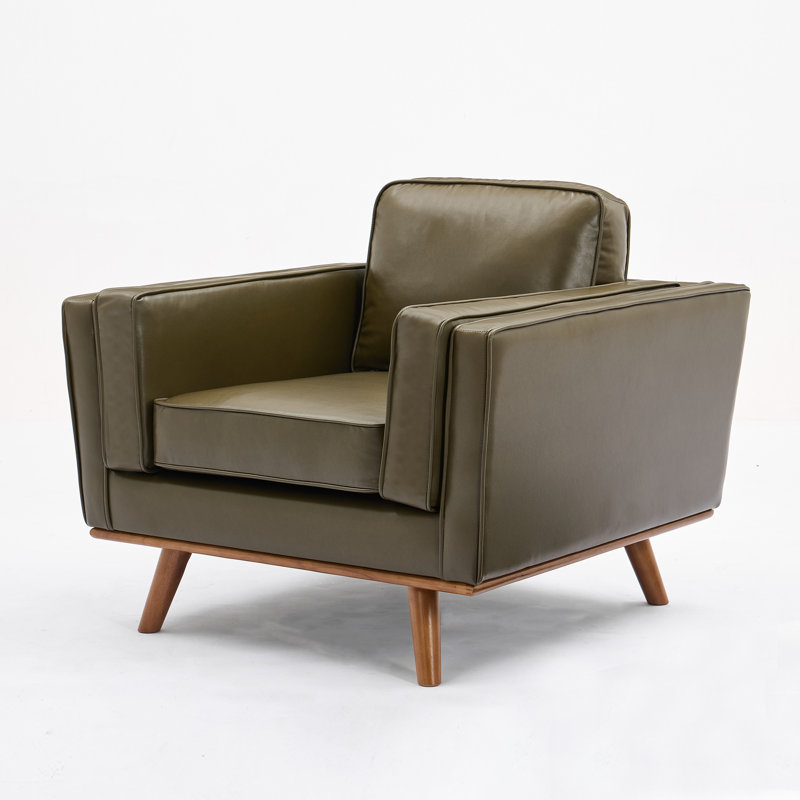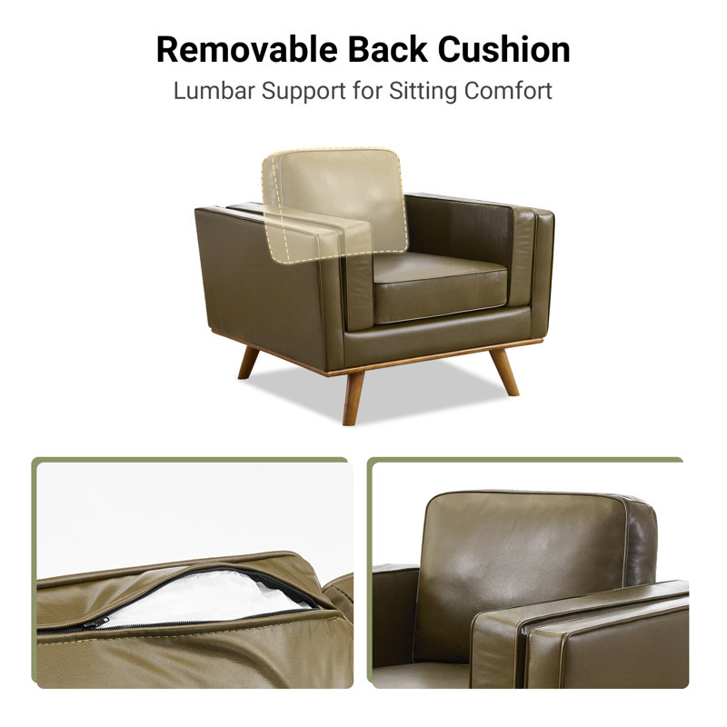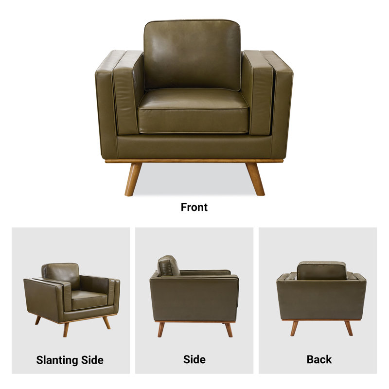 Hand-Finished Leather Armchair Featuring Premium Solid Teak Wood Legs