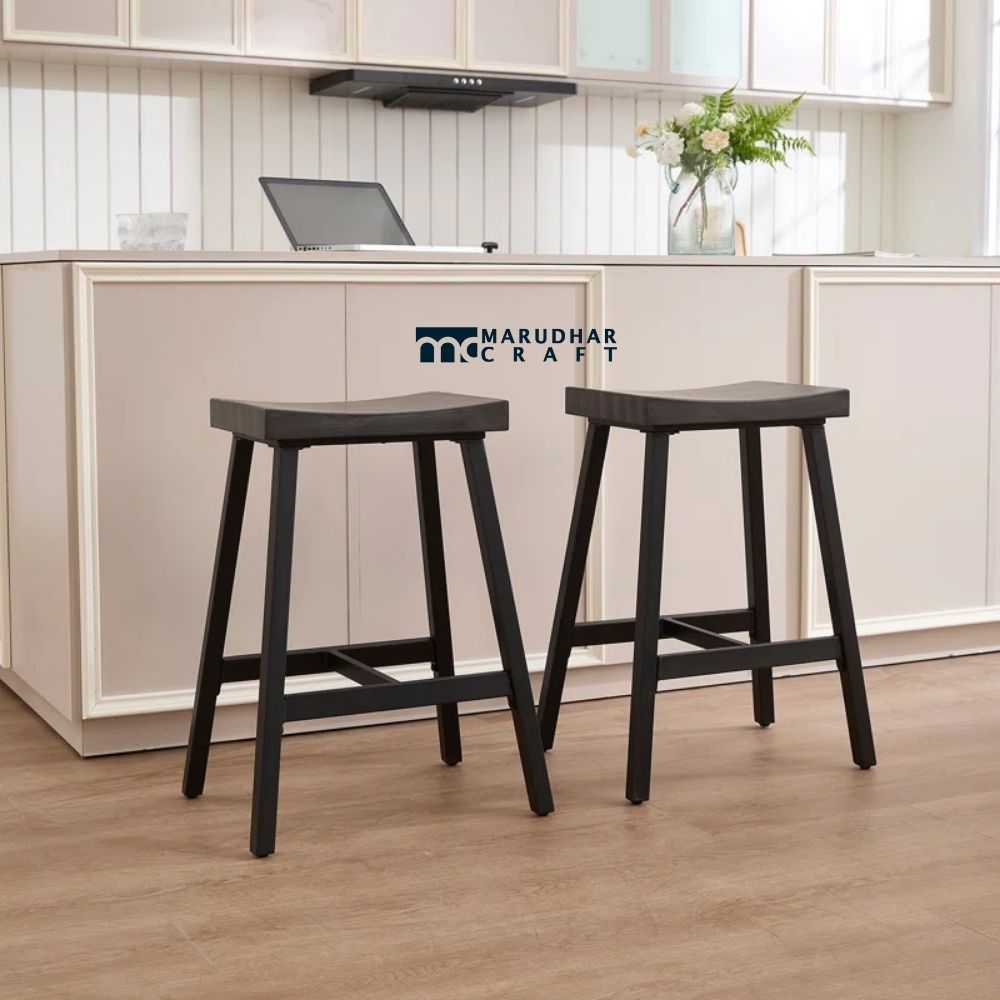 Experience comfort and craftsmanship in your home with this beautifully shaped saddle-style wooden bar stool. Made from premium solid wood, the stool offers a naturally sturdy structure and a smooth contoured seat designed to support comfortable posture even without a backrest. Its 26-inch seat height makes it ideal for Indian kitchen counters, breakfast nooks, and high dining setups.