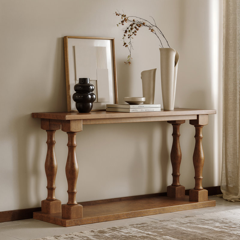 Crafted from premium Sheesham hardwood, this console table brings natural warmth and traditional character to your home. Designed with a smooth polished top, a spacious drawer, and an open shelf, it offers both elegance and utility. Whether placed in the living room, hallway, entryway, or bedroom, it blends easily with Indian décor styles—ranging from ethnic to modern. Its rich grain patterns, sturdy build and long-lasting finish make it a reliable addition that enhances aesthetics while providing everyday storage convenience.