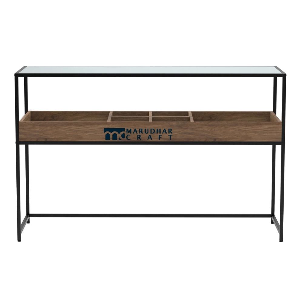 Handcrafted Solid Wood Console Table with Elegant Glass Top Finish