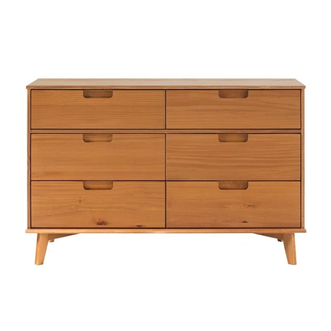 Crafted from solid pine, this 6-drawer dresser is perfect for your bedroom or as a storage console in a guest room. The sleek cutout handles add a stylish touch, while the sturdy construction ensures long-lasting use. Designed with convenience in mind, it ships ready-to-assemble with simple step-by-step instructions. For added safety, it includes a wall anchor and hardware to secure it to the wall. Want a complete set? Opt to add the nightstand to complement your space with cohesive design.