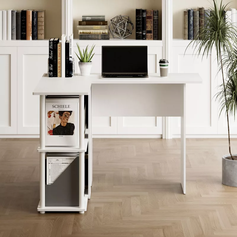 L-Shaped Computer Desk Corner Study & Writing Desk with Open Storage Shelves