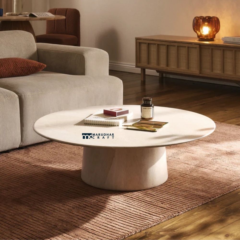 Add a touch of refined elegance to your living space with this large round coffee table featuring a premium travertine-inspired finish. Designed to suit modern Indian homes, this centre table offers a luxurious stone-like appearance while maintaining practicality for everyday use. Its spacious round top makes it ideal for serving guests, placing décor pieces, or enjoying tea-time with family. The neutral tones blend effortlessly with Indian interiors, making it a versatile and stylish focal point for any living room.