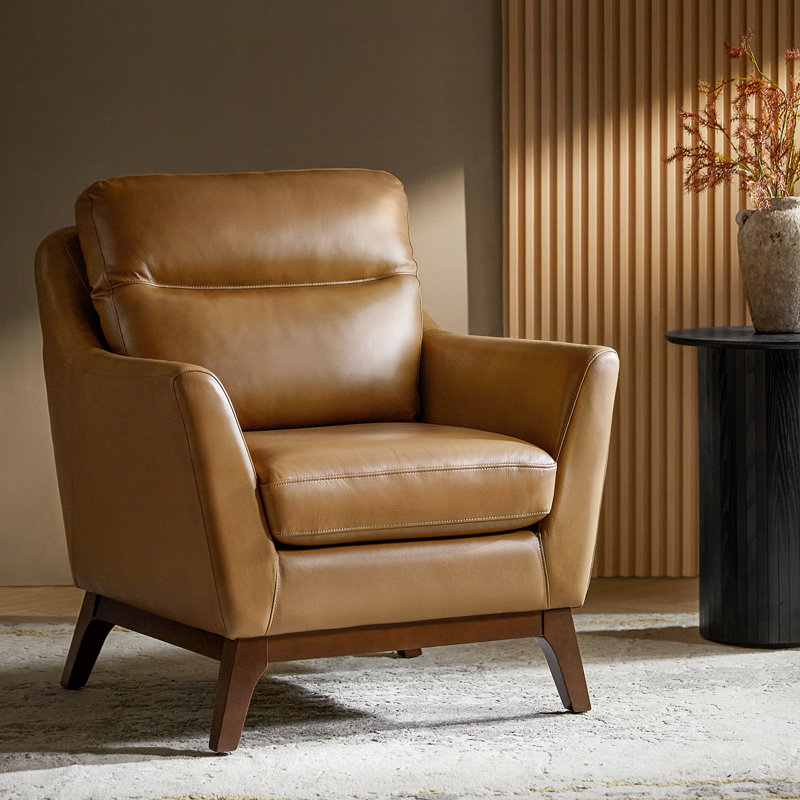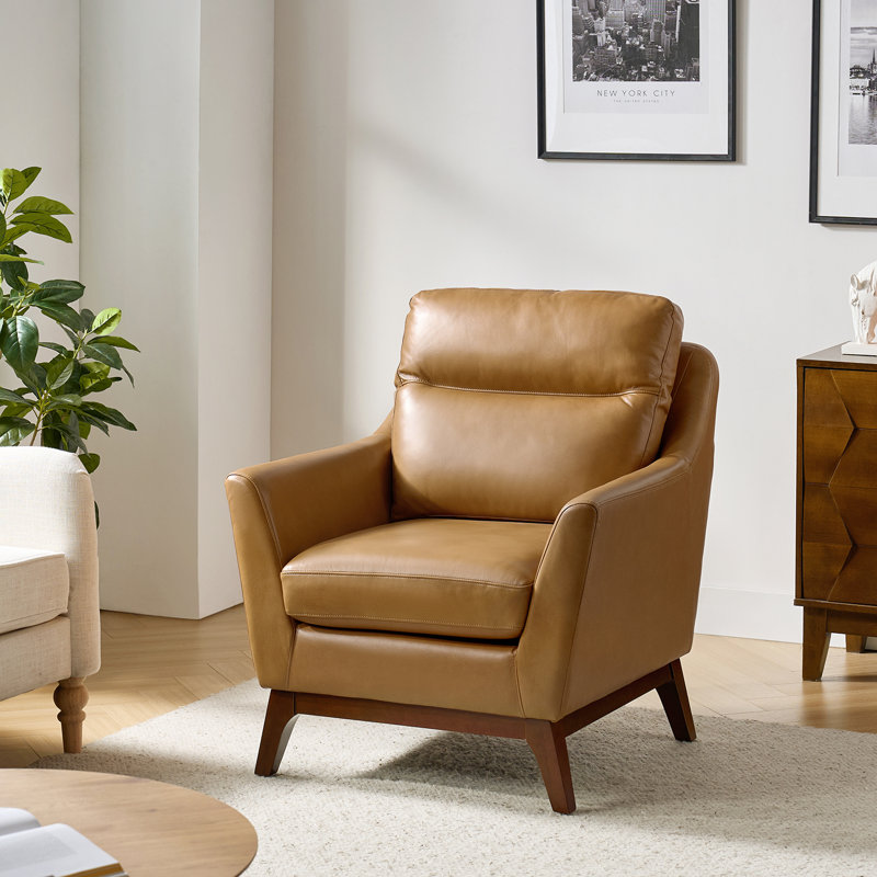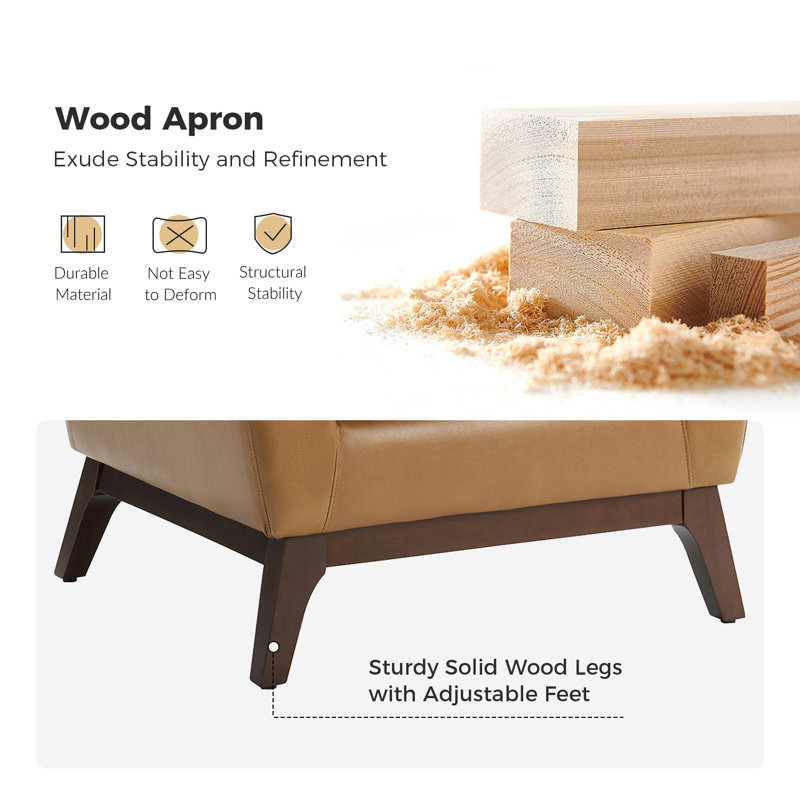 Leather Upholstered Armchair with Solid Wood Legs