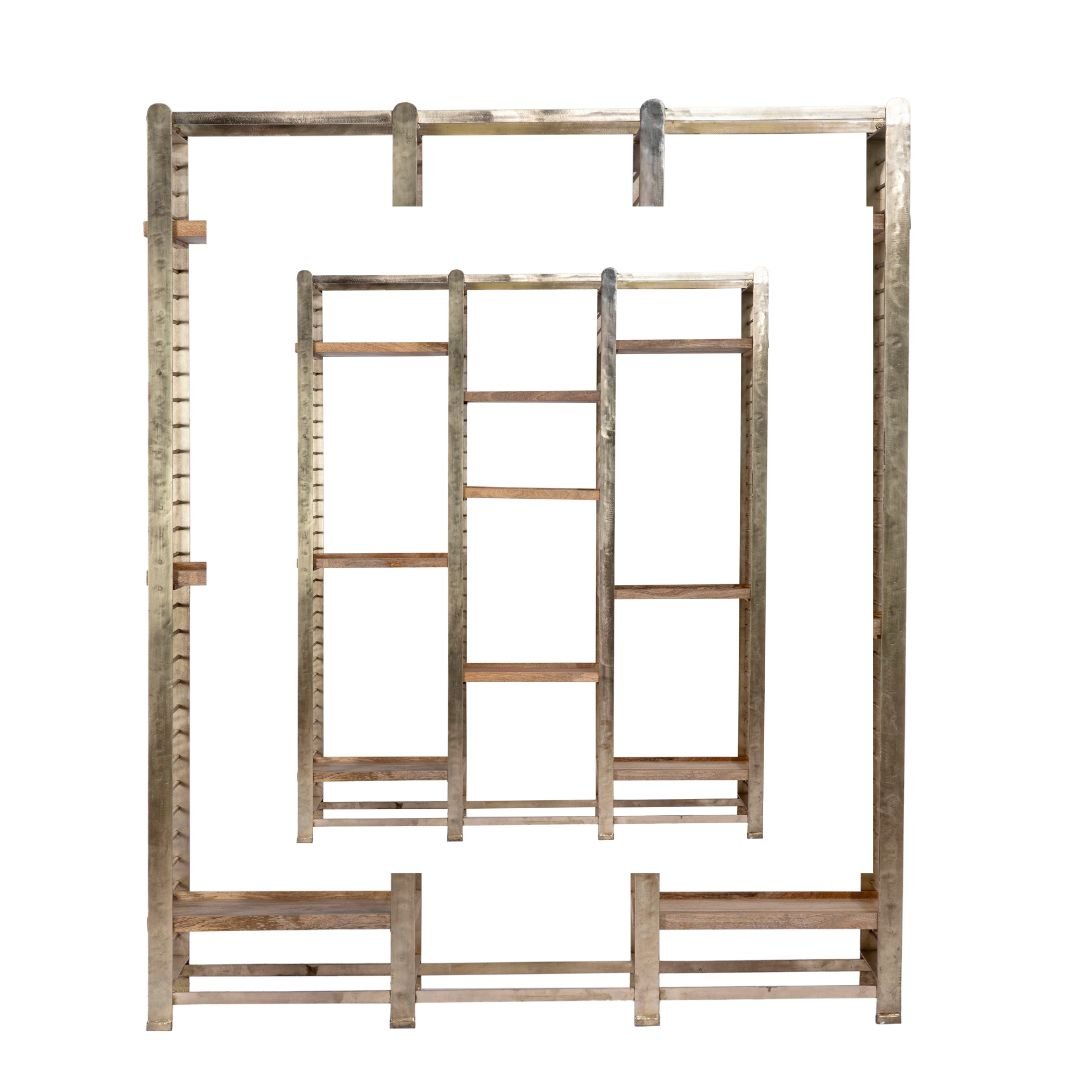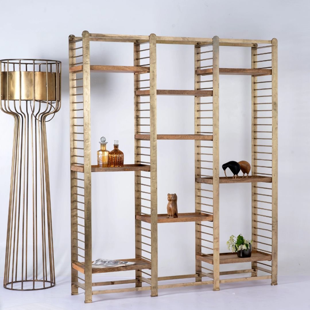 Add versatility and elegance to your storage solutions with this brass-plated iron multi-tray shelf made from natural mango wood. This thoughtfully designed shelf combines industrial strength with the natural beauty of wood, creating a stylish and functional piece of furniture for any room in your home.