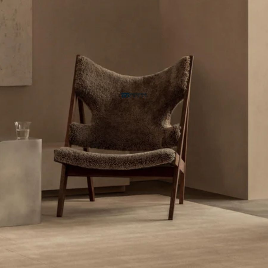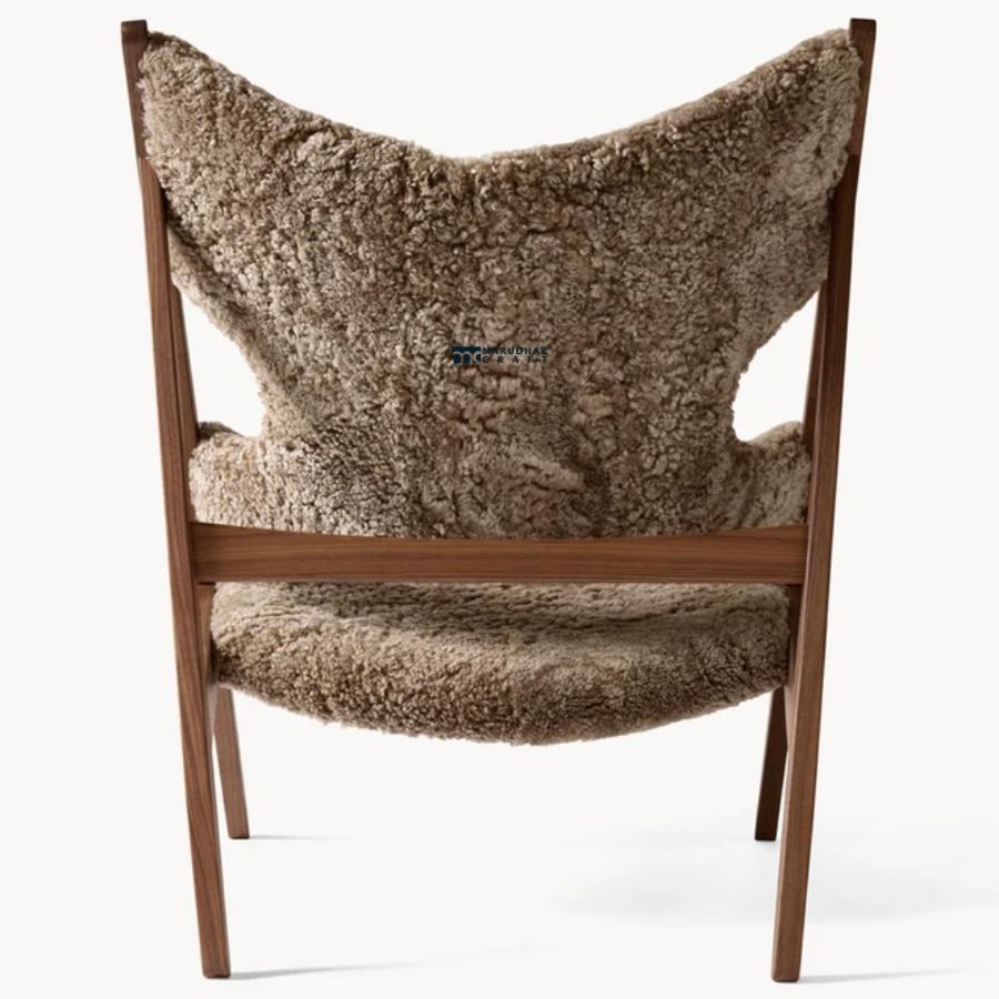 Luxury Sling Back Bouclé Wooden Lounge Chair