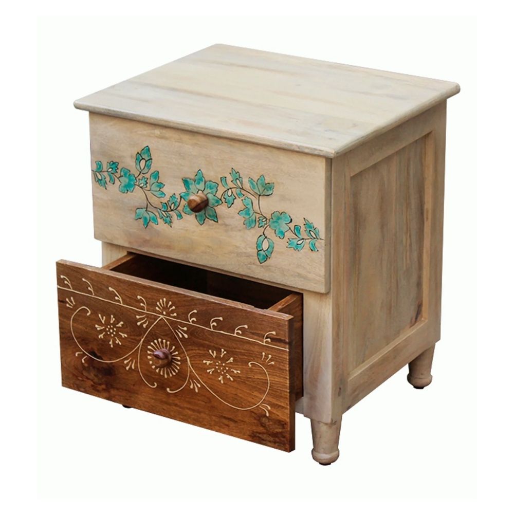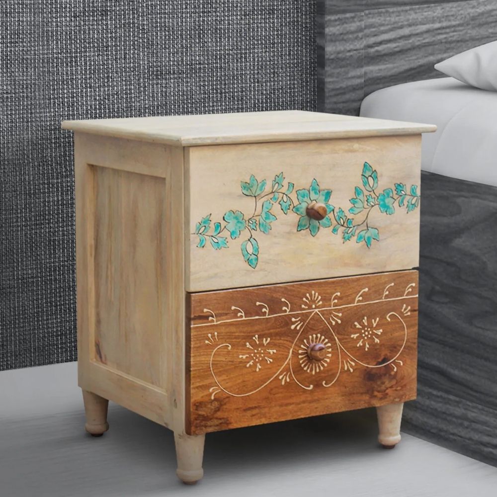 Mango Wood Bedside Table in Teak Finish with Drawers
