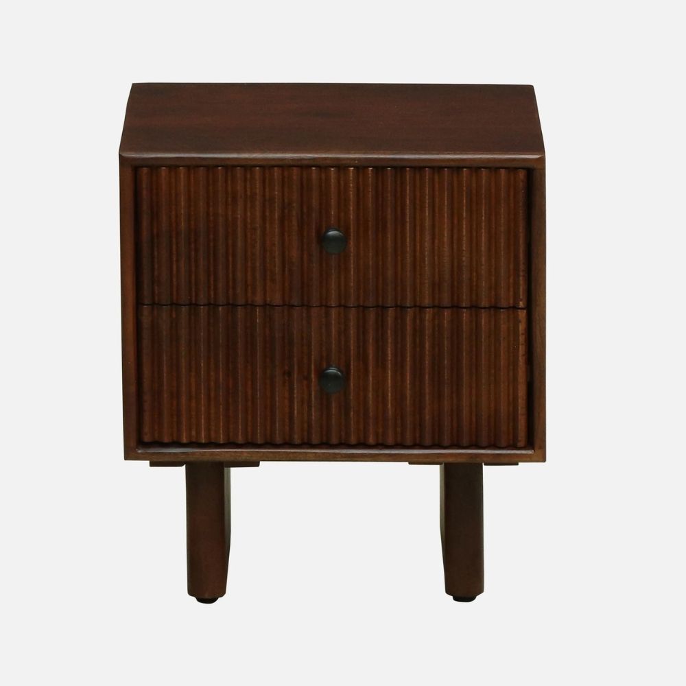 Mango Wood Bedside Table In Tubbaq Finish With 2 Drawers