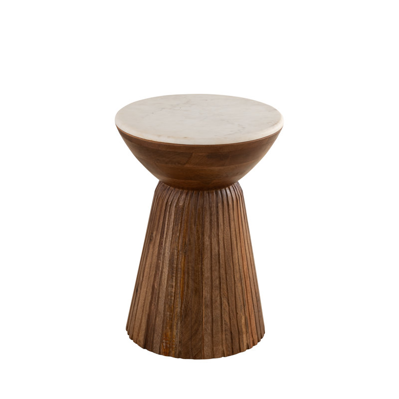 Enhance your living space with this elegant marble top side table featuring a refined solid wood base. Designed with a clean and contemporary form, it balances luxury and simplicity for modern Indian homes. The natural marble surface adds a premium touch, while the sturdy wooden structure ensures durability for daily use. Ideal beside sofas, beds, lounge chairs or entry corners, this compact table offers a perfect spot for décor accents, indoor plants, beverages, books or essentials. Its minimalist presence blends seamlessly with both classic and modern interiors, making it a timeless home décor addition.
