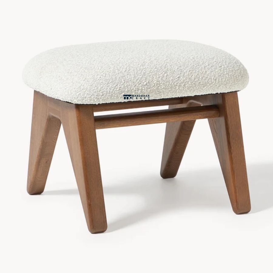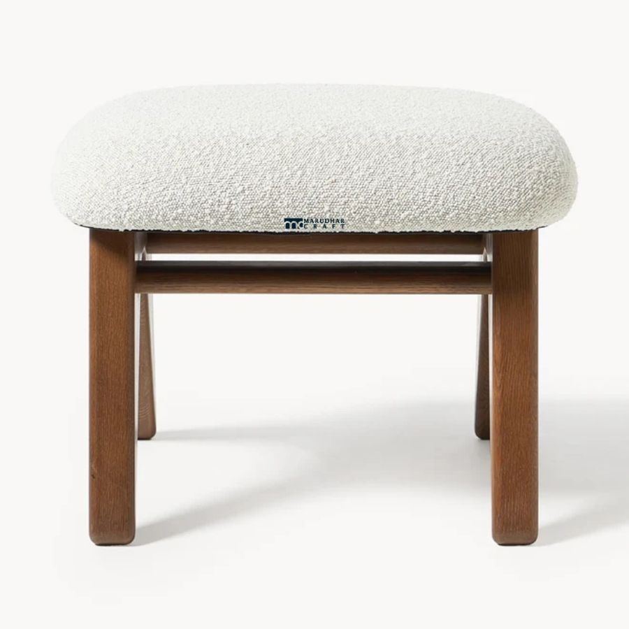 Complete your relaxation corner with the Marudhar Craft Bouclé Ottoman, a perfect blend of cozy texture and mid-century design. Featuring a plush, cloud-like cream bouclé fabric and a sturdy solid wood base, this footstool is designed to provide both comfort and a sophisticated accent to your living room or bedroom. Its versatile size makes it ideal as a footrest, extra seating, or even a decorative side table base.