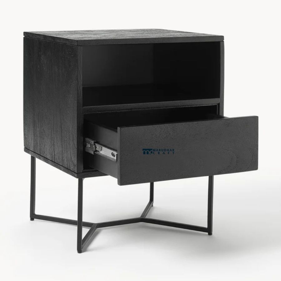 Be the first to review “Marudhar Craft Modern Charcoal 1-Drawer Bedside Table”