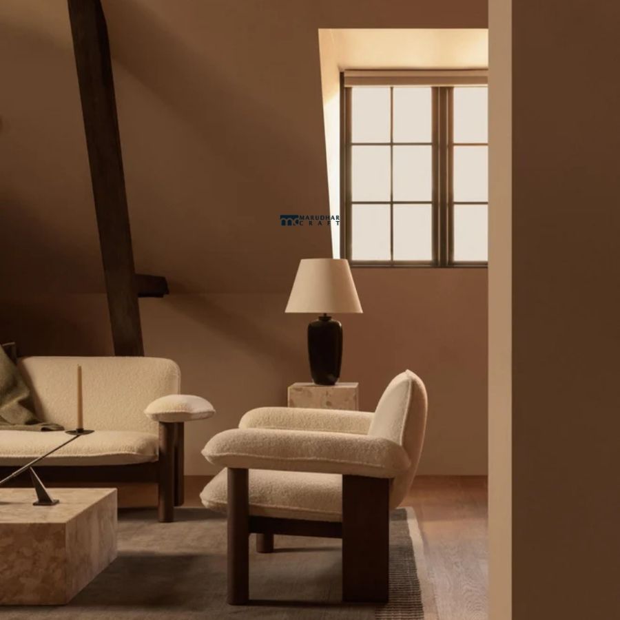 Transform your living space into a sanctuary of comfort and style with the Marudhar Craft Bouclé Lounge Collection. Featuring the Cloud Accent Chair and matching Upholstered Ottoman, this set defines modern elegance through its rich, tactile textures and warm wooden accents. Designed for those who appreciate the “Japandi” aesthetic, these pieces offer a perfect balance of Japanese minimalism and Scandinavian functionality.