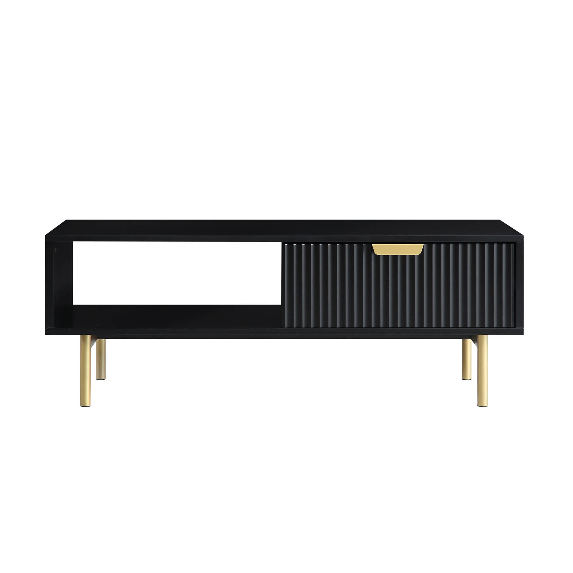 Matte Black Coffee Table with Drawer – Modern Wooden Centre Table with Built-In Storage