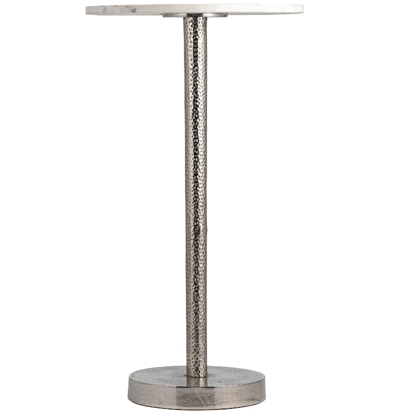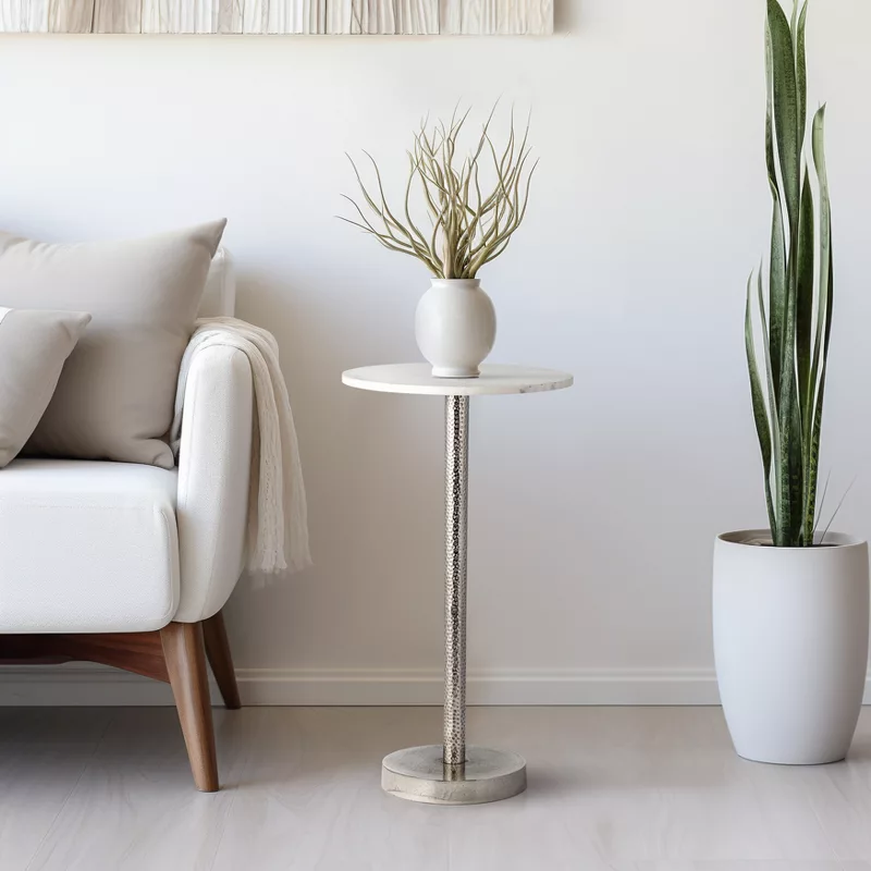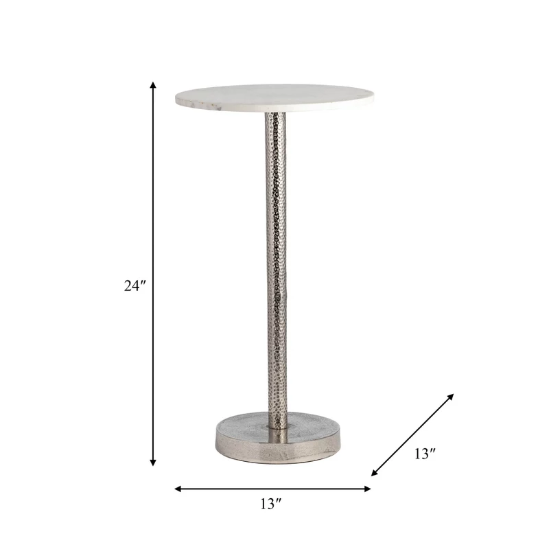 Metal Side Table with Polished Marble Top – Silver Accent Table for Small Spaces