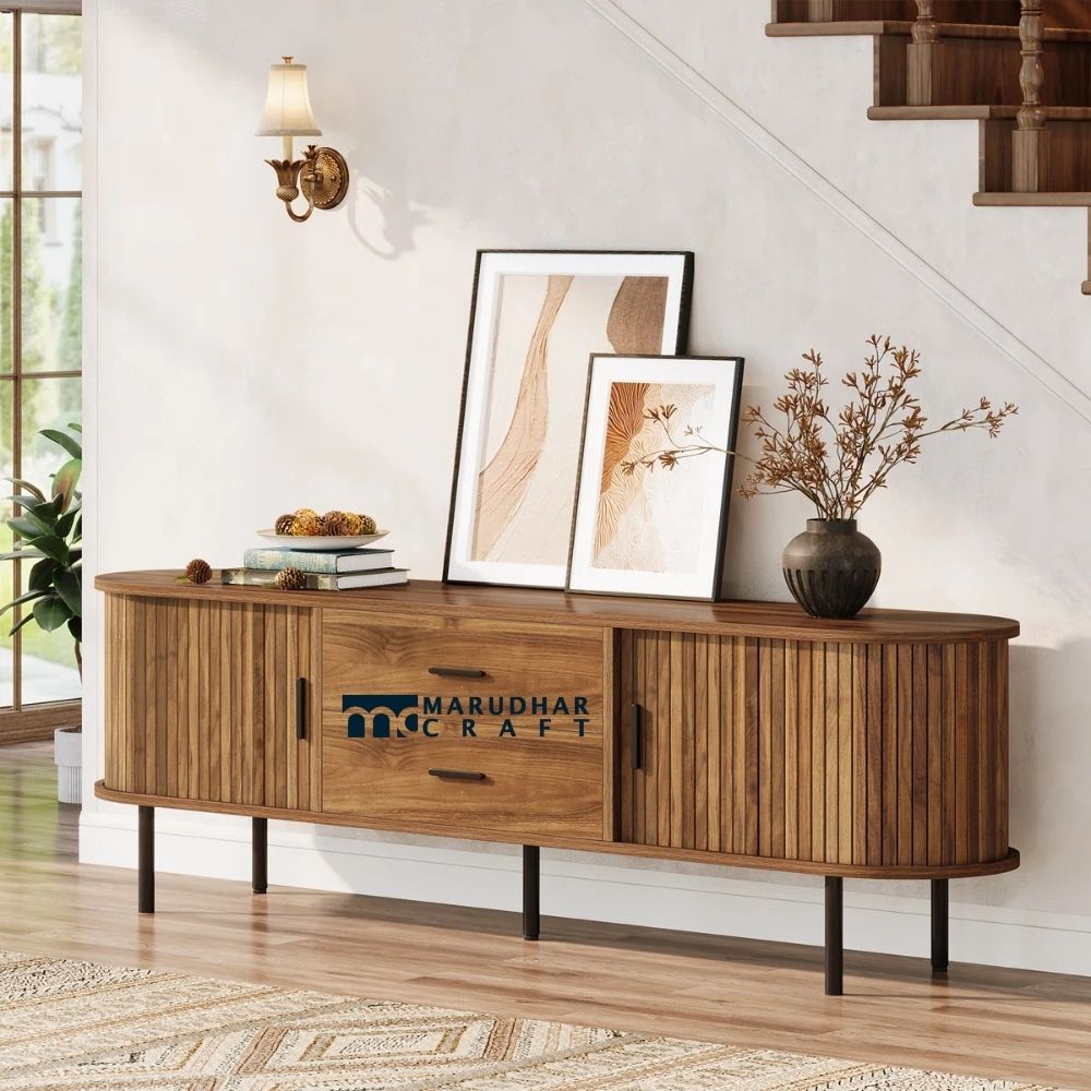 Inspired by mid-century modern design and adapted for contemporary Indian homes, this low console cabinet offers a perfect balance of style and functionality. Crafted with a solid wood structure, it features clean lines, a low-profile form, and a warm wooden finish that adds character to any living space. Ideal for use as a TV unit, media console, or storage cabinet, it blends seamlessly with modern, minimalist, and urban Indian interiors while providing practical storage for daily essentials.