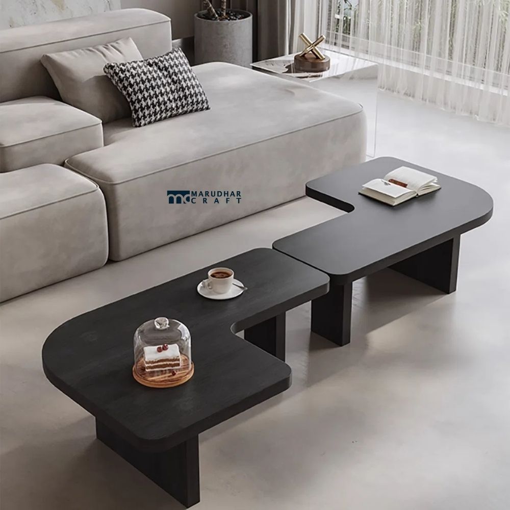 AuraStone Premium Solid Wood Coffee Table With Smooth Polished Finish And Elegant Contemporary Design