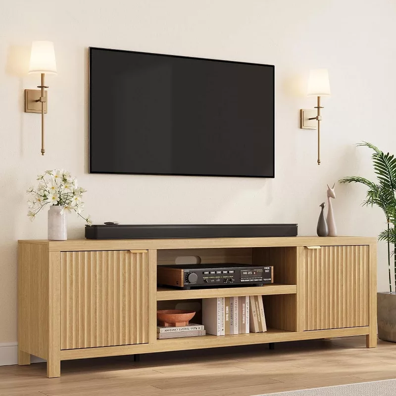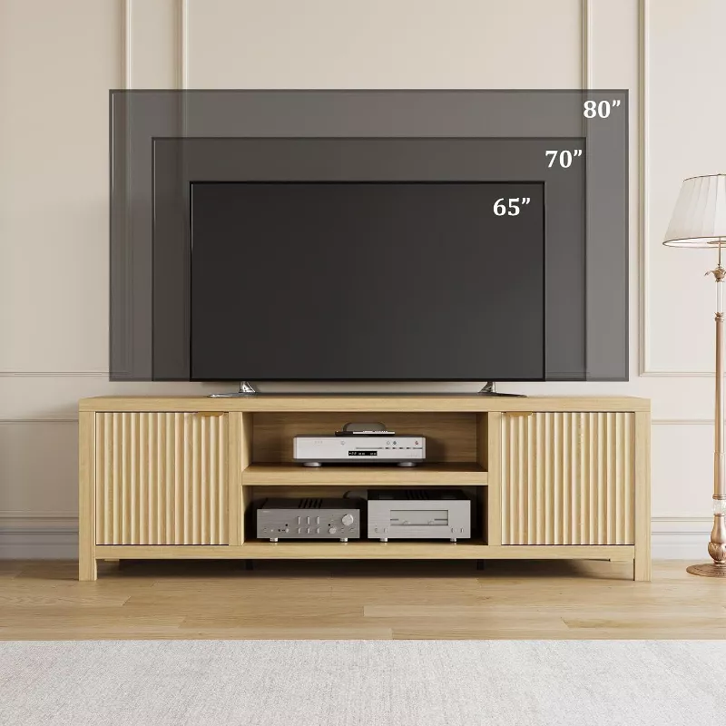 Add timeless mid-century style to your living space with this modern TV stand featuring an open shelf design. Built with a durable MDF frame and a wood surface, this media console provides strong support for large televisions while maintaining a clean, elegant appearance. The open shelf offers easy access to media devices, gaming consoles, or décor, making organization simple and stylish. Designed for both form and function, this TV stand is an excellent choice for contemporary and mid-century inspired interiors.