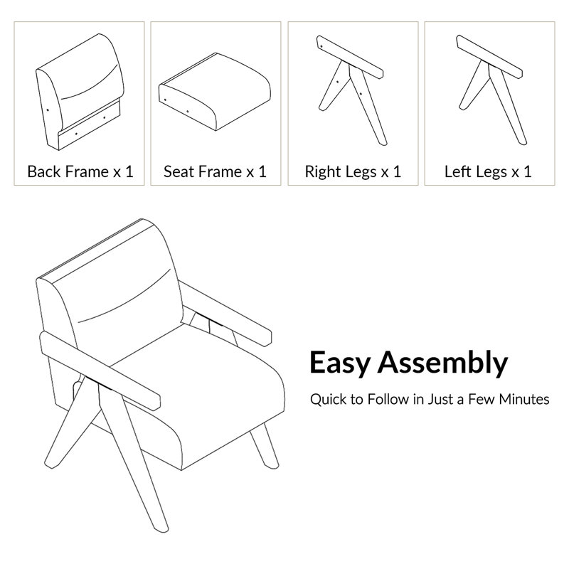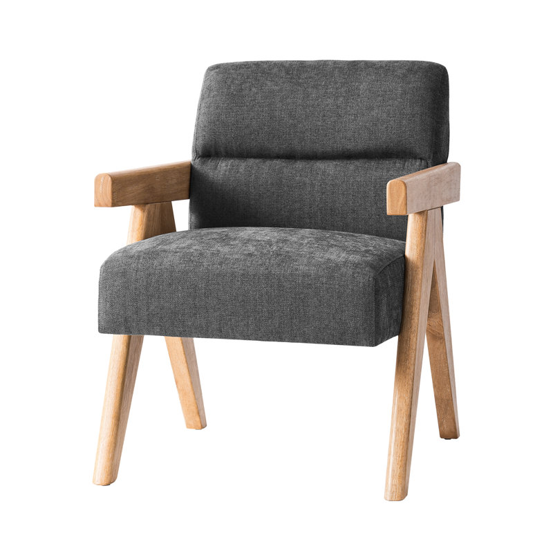 Mid-Century Modern Textured Fabric Upholstered Accent Chair with Solid Wood Frame