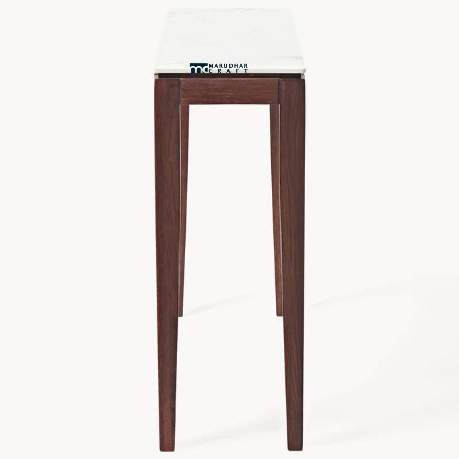 This minimalist console table showcases timeless elegance with its slim profile and refined proportions. Crafted from solid wood, it features gently tapered legs and a smooth tabletop that highlights the natural grain of the wood. The warm walnut-brown finish adds depth and sophistication, making it an ideal accent for entryways, hallways, or living spaces where understated design is key.