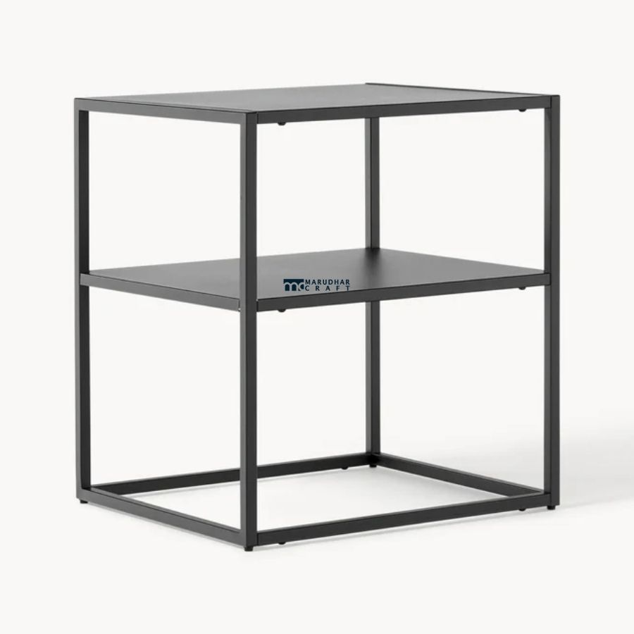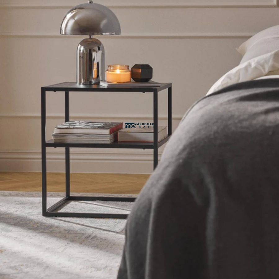A clean and contemporary bedside table designed with a sturdy metal frame and a sleek white finish. Featuring an open storage shelf, it provides convenient space for books and essentials while complementing modern and minimalist bedroom interiors.