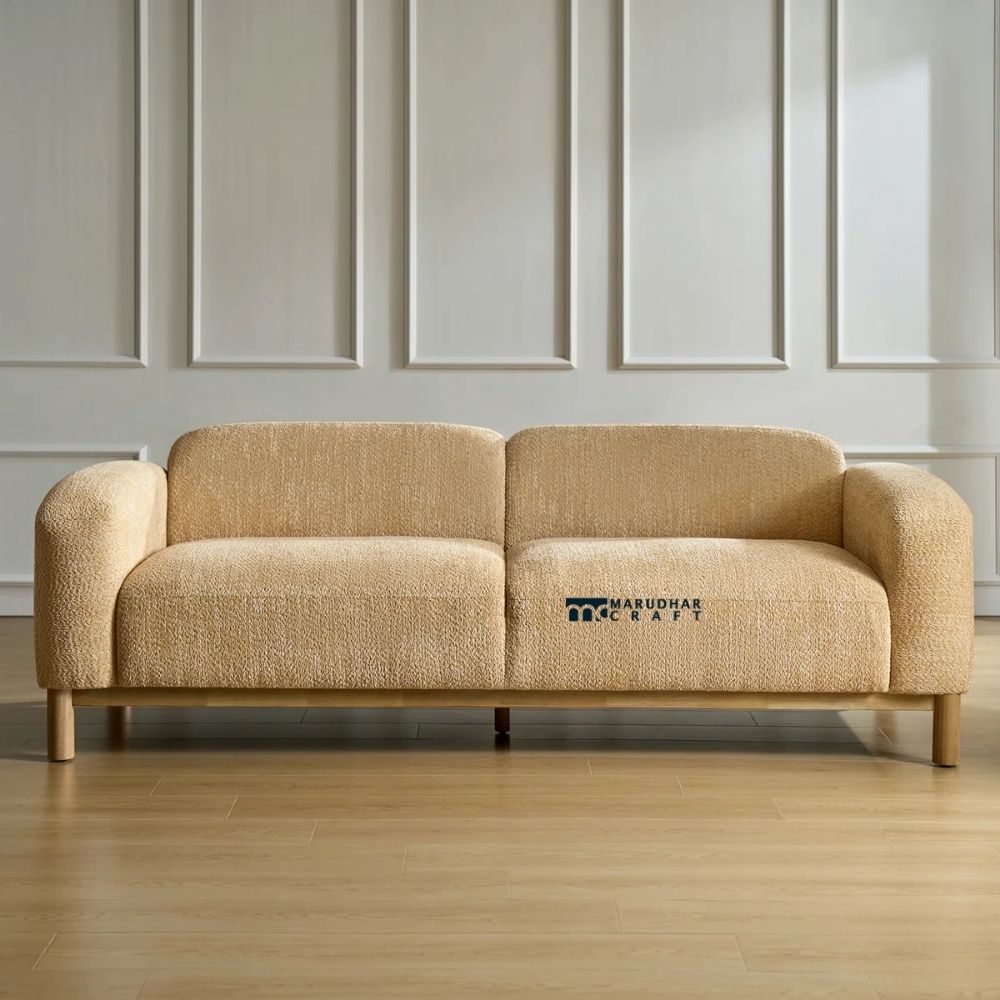 This modern bouclé sofa is designed to elevate contemporary Indian living spaces with its soft texture and sturdy construction. Upholstered in premium bouclé fabric, it offers a cozy and inviting seating experience while maintaining a refined modern look. The solid wood base adds strength, stability, and a natural touch, making it suitable for everyday use in Indian homes. Ideal for living rooms, lounges, or designer spaces, this sofa blends comfort, durability, and modern elegance effortlessly.