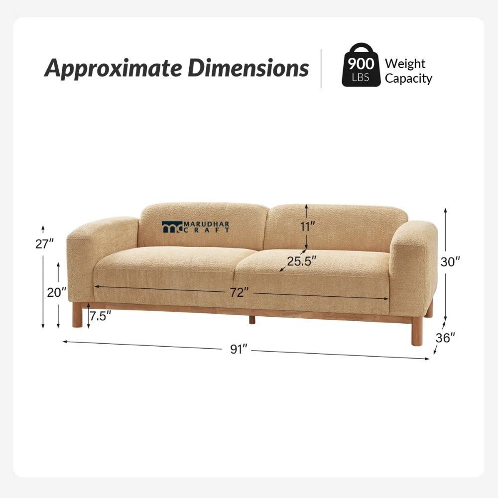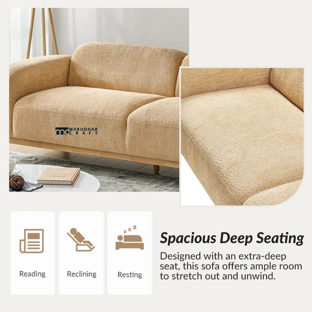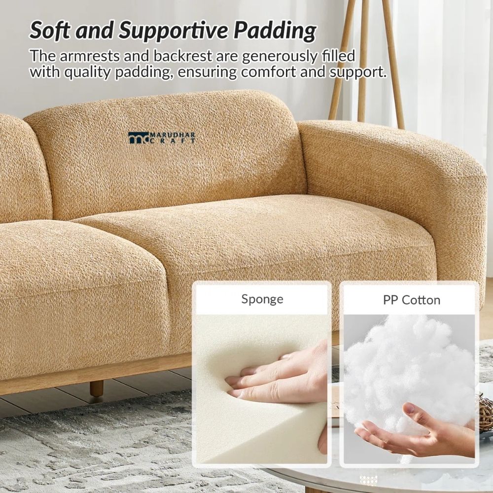 Modern Bouclé Fabric Sofa with Solid Wood Base