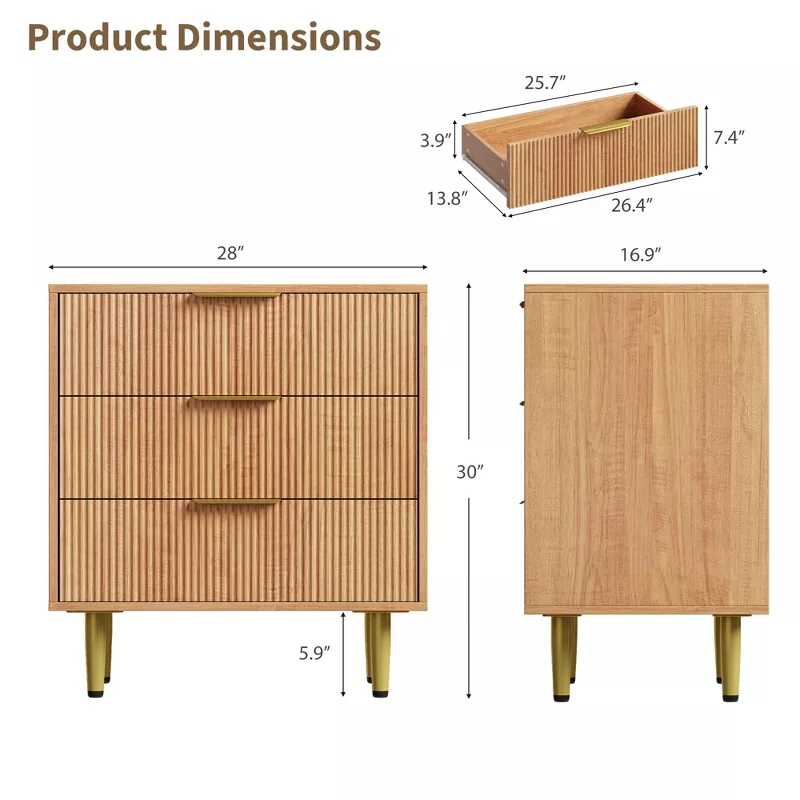 With three spacious drawers, it provides practical storage for clothes, accessories, documents, and household essentials, making it ideal for bedrooms, living rooms, or entryways.