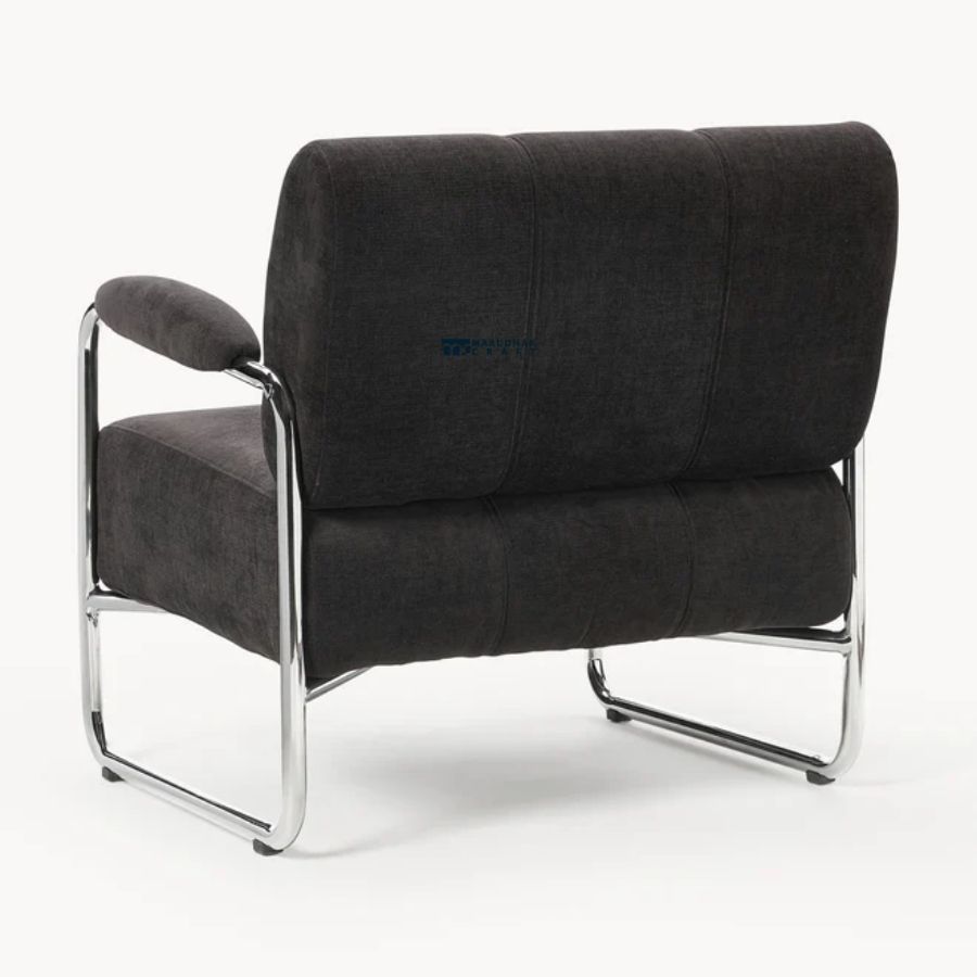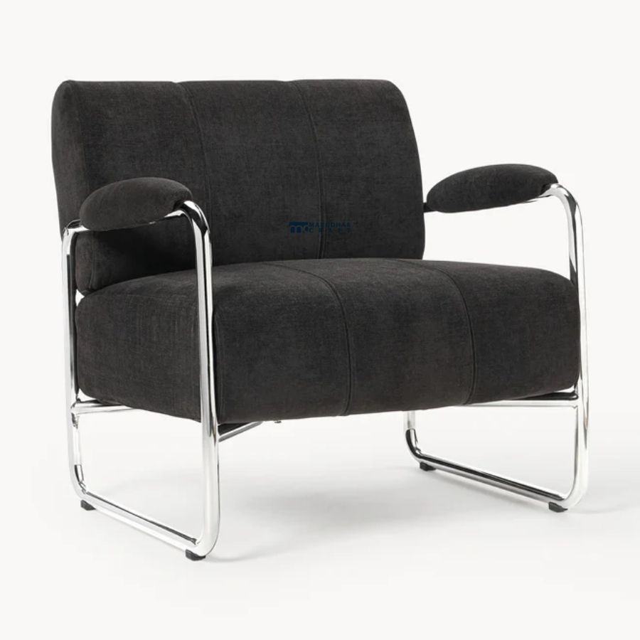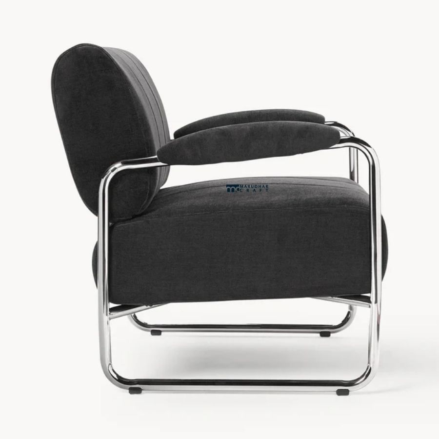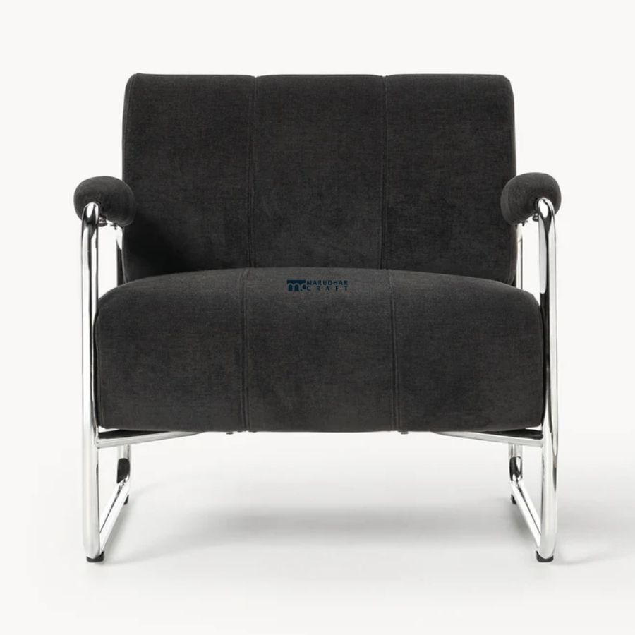 Modern Chrome Frame Upholstered Single Seater Chair with Ottoman