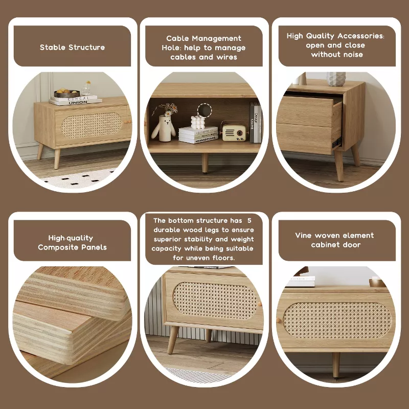 Bring rustic charm and modern functionality to your living space with this modern farmhouse media console. Crafted entirely from durable hardwood, this TV stand offers a warm, natural look while providing strong and reliable support for large televisions up to 80 inches. Its low-profile design makes it ideal for spacious living rooms and entertainment areas. Designed for everyday use, this console blends farmhouse character with clean, contemporary lines for a timeless appeal.