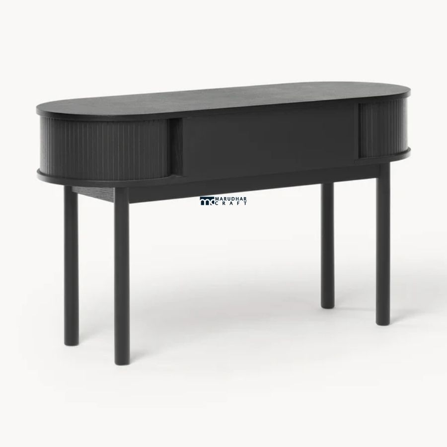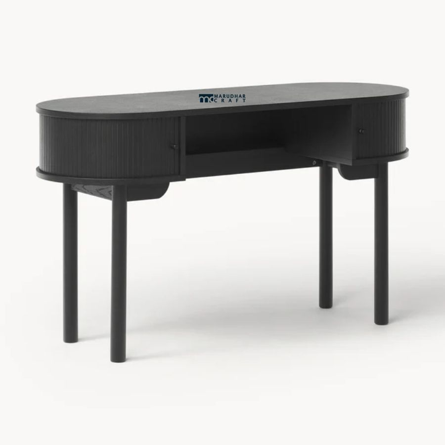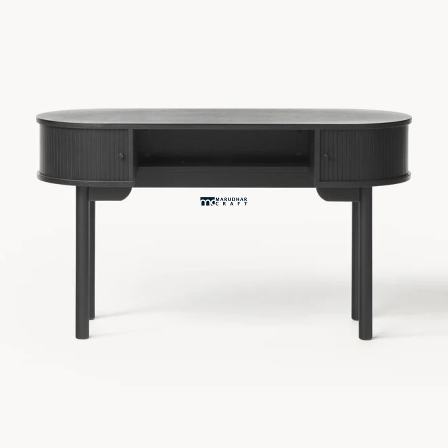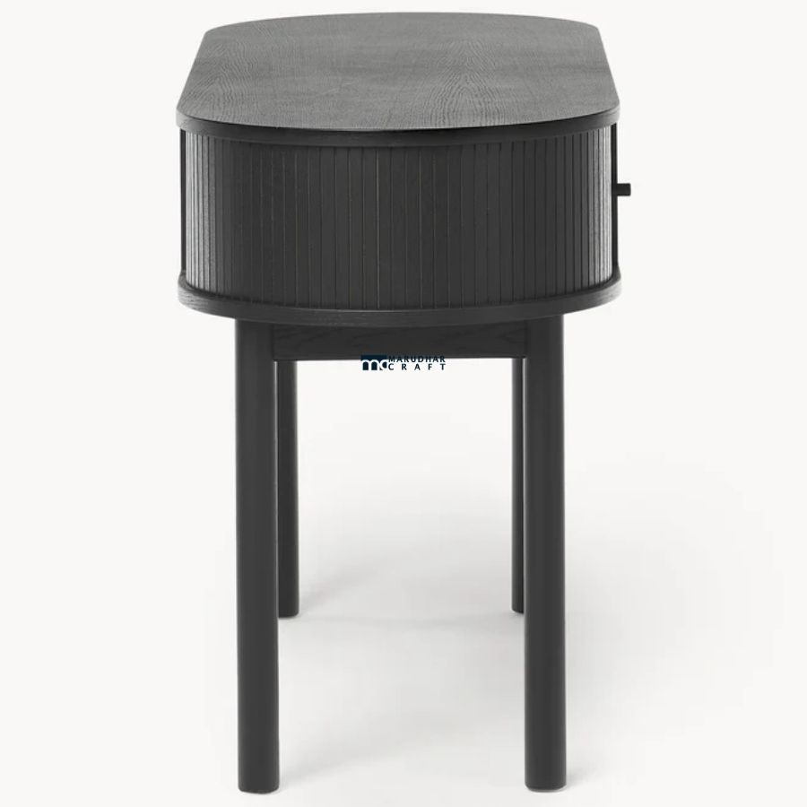A refined modern writing desk crafted from premium solid wood, featuring elegant fluted detailing and a smooth matte finish. Designed to enhance contemporary interiors, it offers compact storage and a stylish workspace for writing or study.