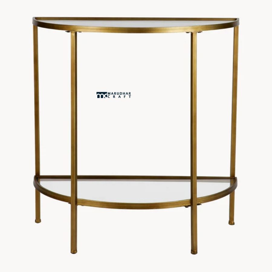 Modern Metal & Glass Console Table with Shelf (Antique Gold Finish)