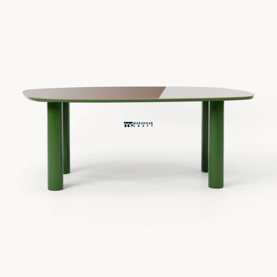 This modern rectangular dining table features a sleek rounded-edge glass tabletop supported by bold cylindrical legs in a contemporary finish. Designed to make a statement, it blends elegance with playful modern design, perfect for stylish dining spaces and open interiors.