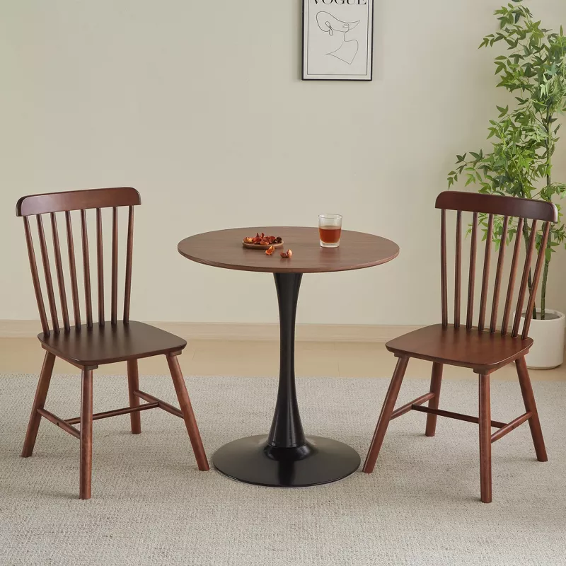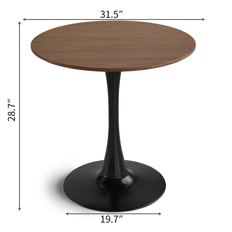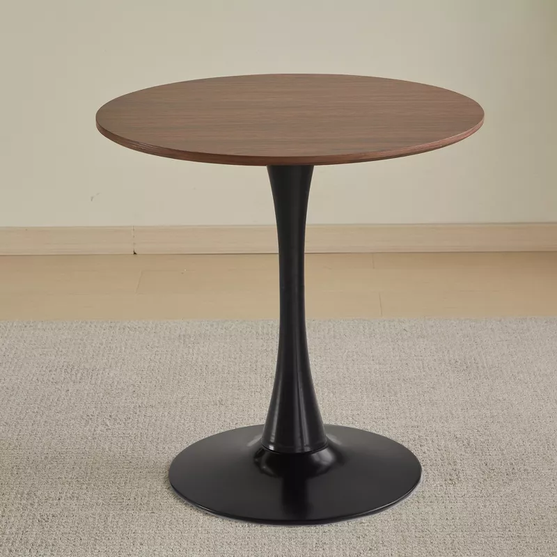 Add a modern touch to your dining area with this stylish round dining table designed for both beauty and functionality. Featuring a smooth brown fiberboard tabletop and a sleek black wooden pedestal base, this table offers a clean, contemporary look while providing strong and stable support. Its compact size makes it perfect for apartments, kitchens, and small dining spaces, comfortably seating up to four people.
