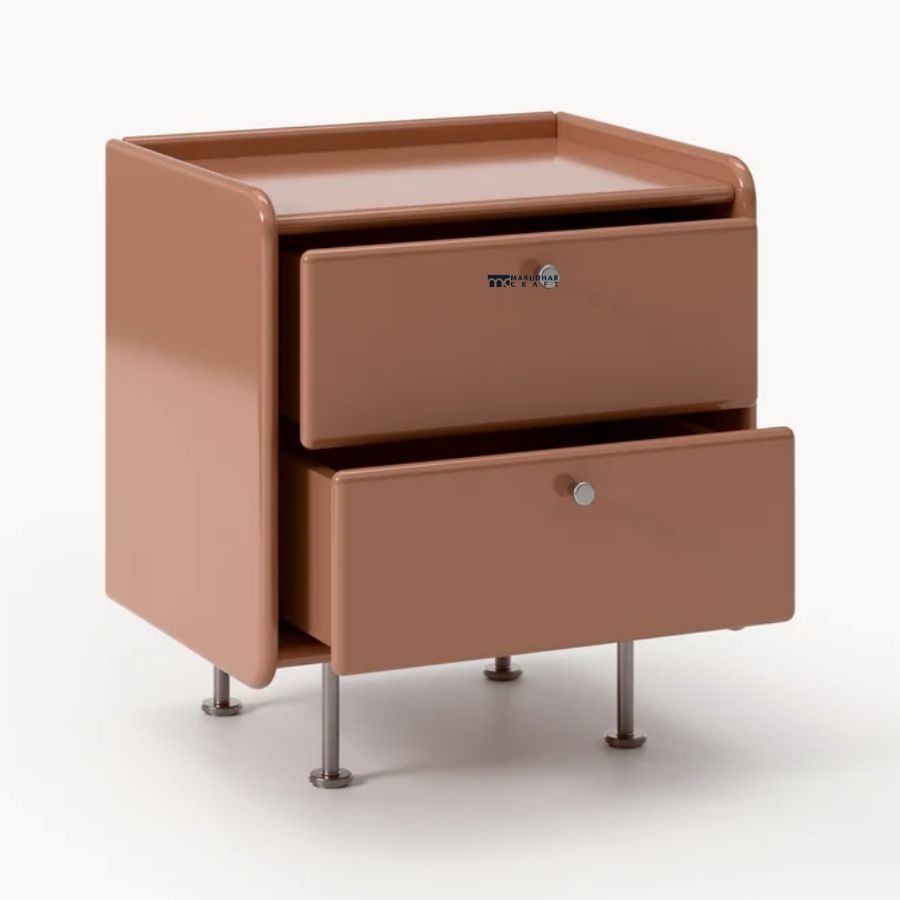 Infuse your bedroom with modern charm and a sophisticated pop of color with our Rounded 2-Drawer Nightstand. Designed with a clean, minimalist silhouette and a trend-setting dusty pink matte finish, this bedside table is the perfect marriage of contemporary style and daily utility. Its unique curved edges offer a soft visual appeal, while the two spacious drawers keep your personal items organized and within reach. Elevated by slender metallic legs, this piece brings a sense of light, airy sophistication to any contemporary, Scandinavian, or retro-inspired interior.