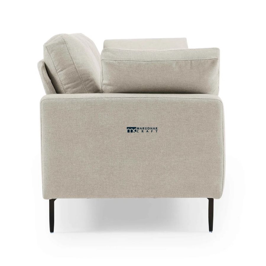 This modern 3-seater sofa features a refined, minimalist design with slim metal legs and soft light-beige fabric upholstery. Offering a perfect balance of comfort and elegance, it is ideal for contemporary homes seeking a clean, airy aesthetic.