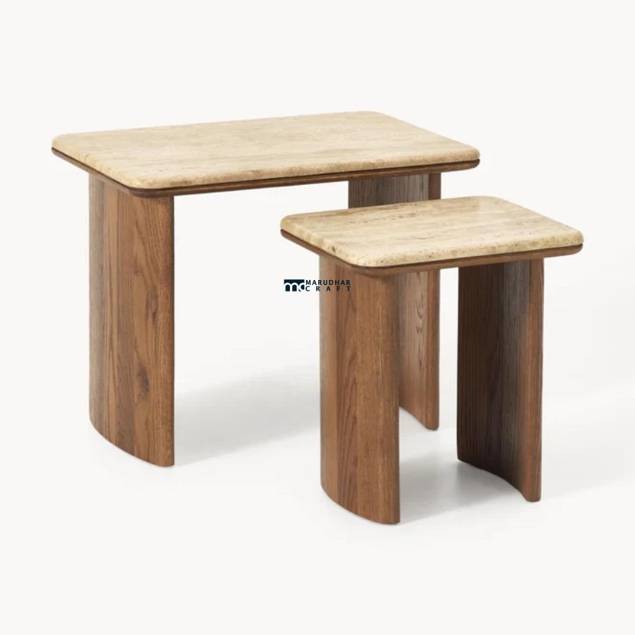 Modern Solid Wood Nesting Side Tables with Marble Top (Set of 2)