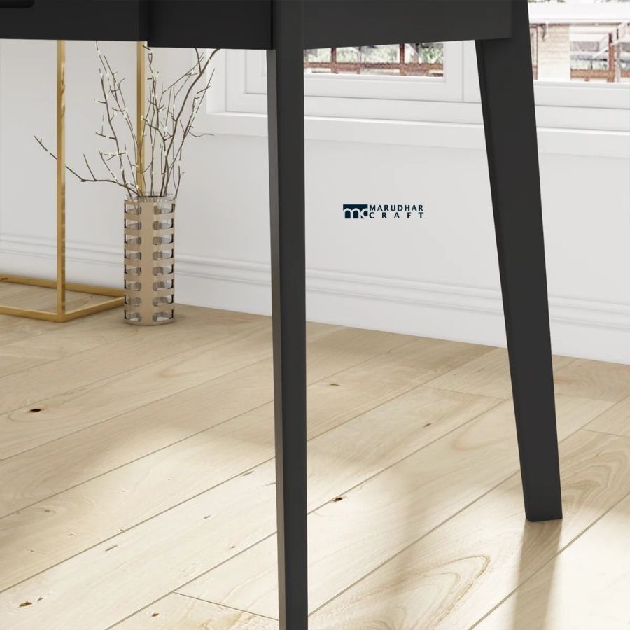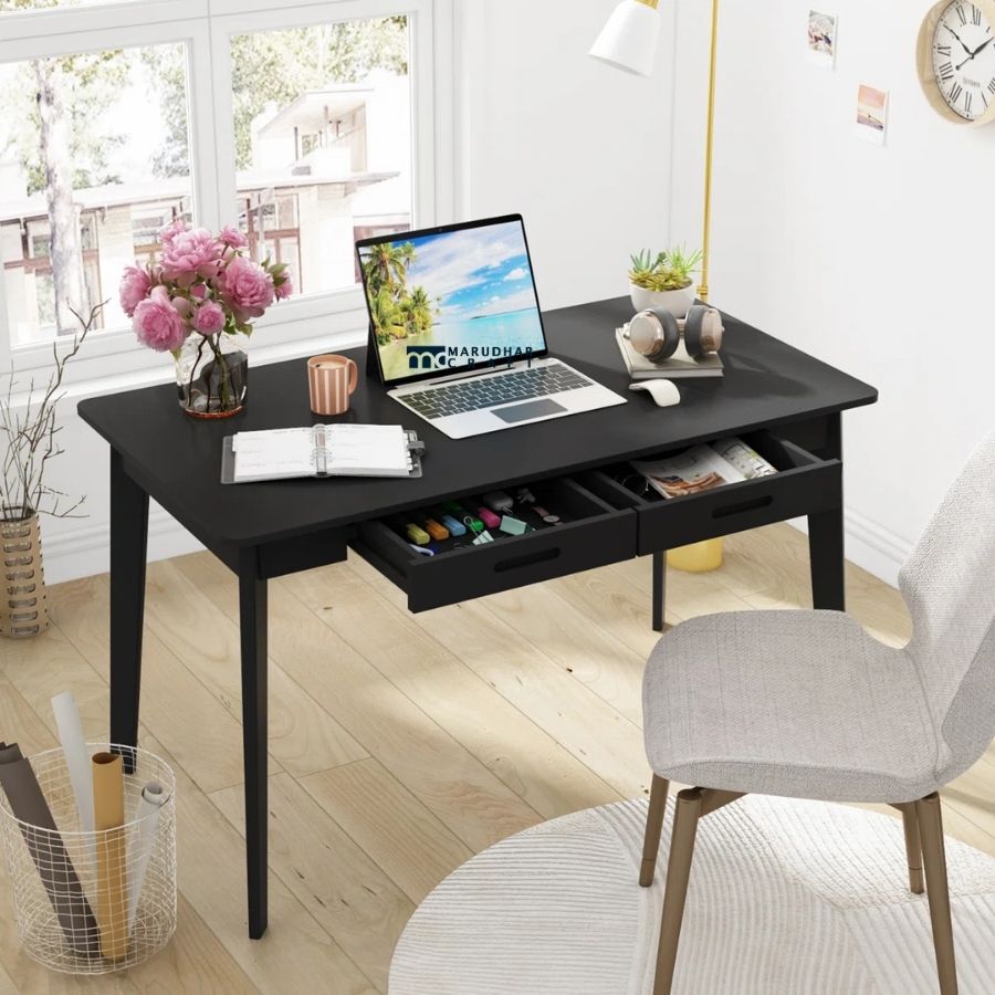 Enhance your workspace with this stylish modern study table, designed for both productivity and elegance. Made from premium-quality solid wood, this desk features a sleek black finish that adds a contemporary touch to any home or office interior. The wide tabletop provides sufficient space for laptops, notebooks, and accessories, while the built-in drawers offer convenient storage for daily essentials. Its clean lines and sturdy construction make it ideal for study rooms, home offices, and professional workspaces.
