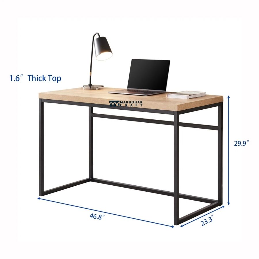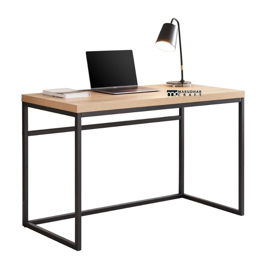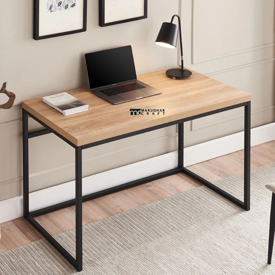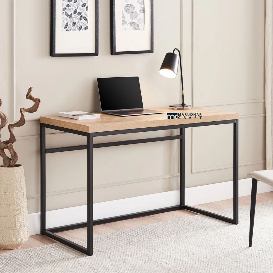 This modern study table features a clean, minimalist design that combines a warm wooden tabletop with a sturdy metal frame. Designed for contemporary home offices and workspaces, the desk offers a spacious surface suitable for laptop work, writing, or studying. The strong metal legs provide excellent stability, while the sleek profile makes it ideal for compact as well as open interiors. Perfect for home offices, study rooms, or professional setups.
