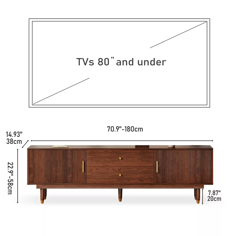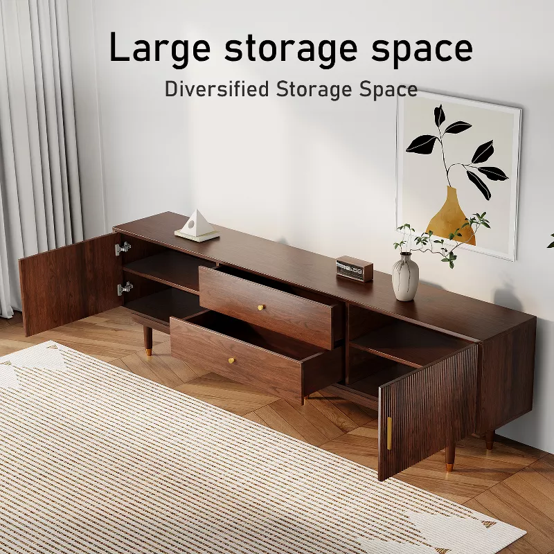 Upgrade your living space with this modern style TV cabinet designed to deliver both elegance and exceptional strength. Featuring a wide 78.7-inch surface, this entertainment center comfortably supports large televisions while providing ample storage through drawers and storage cabinets. Crafted from high-quality MDF with a smooth, refined finish, it offers durability and long-lasting performance. Natural metal hardware adds a sleek accent, making this TV cabinet a perfect blend of modern design and everyday functionality for contemporary living rooms.