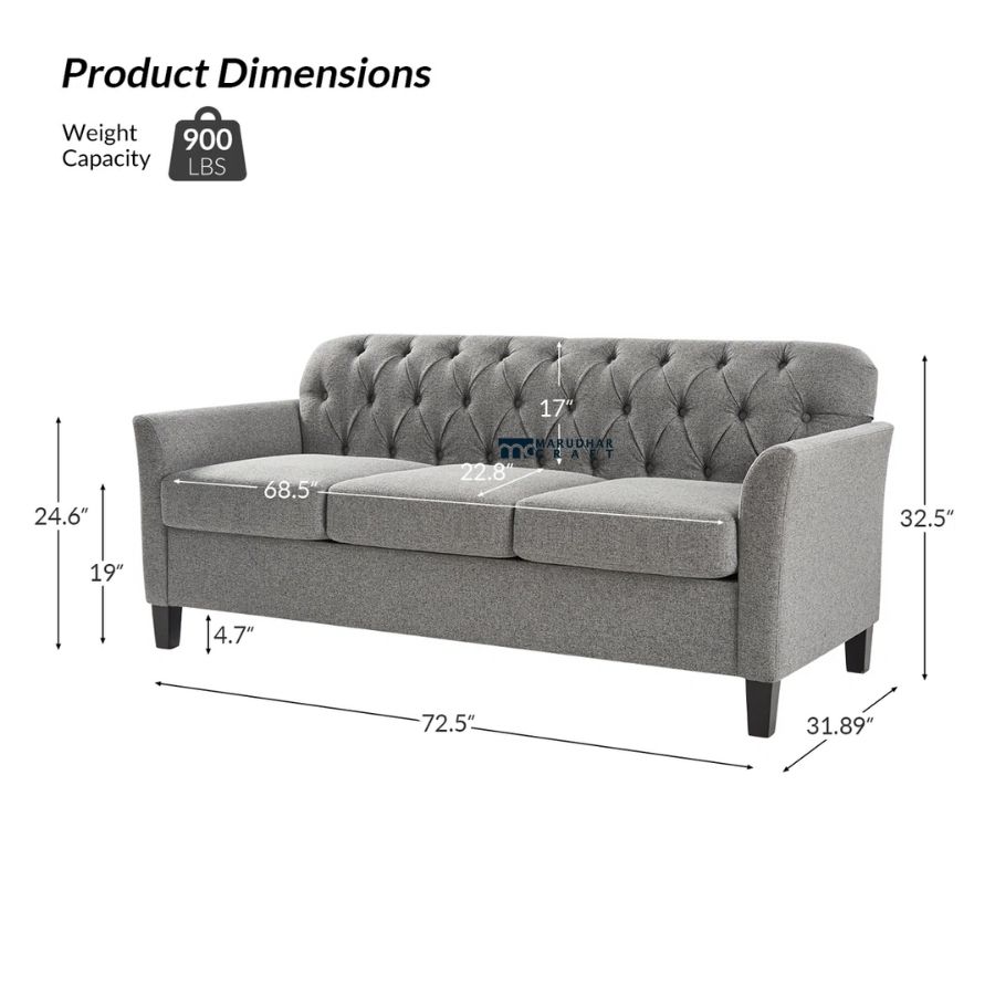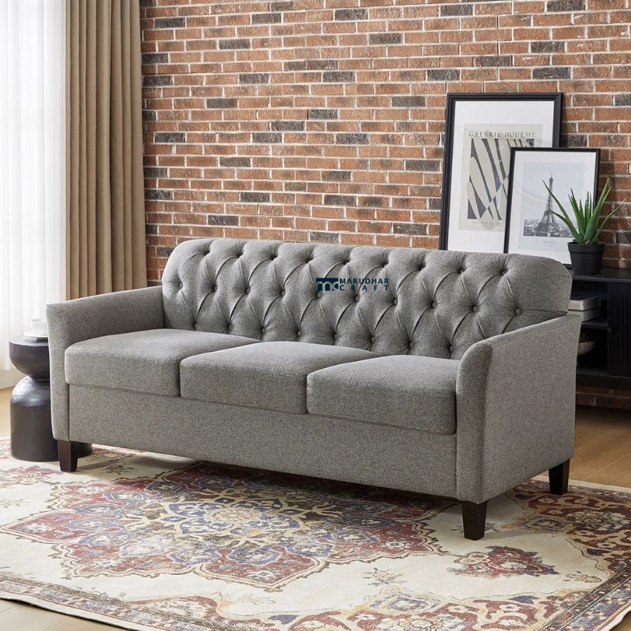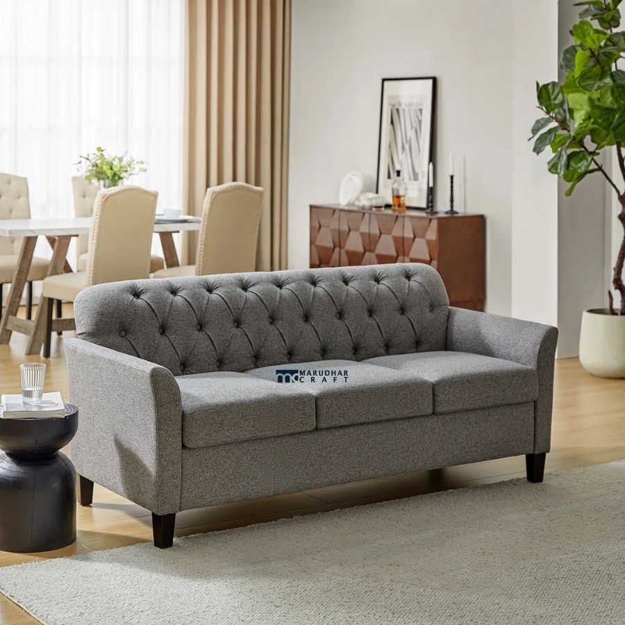 Elevate your living space with this modern tufted 3-seater sofa, designed to combine timeless elegance with everyday comfort. Upholstered in premium grey fabric, it features a classic button-tufted backrest, clean-lined arms, and sturdy wooden legs, making it a perfect fit for contemporary and minimalist interiors.