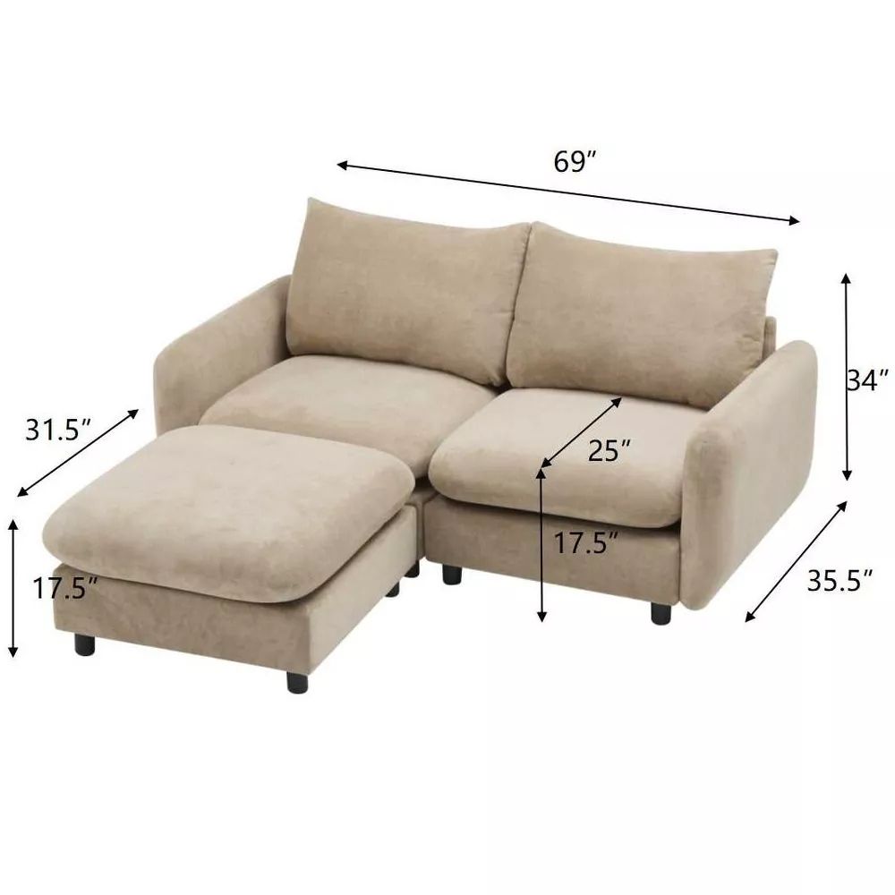 - Piece 3: Ottoman Sectional Pieces: 31.5 inches (W) x 17.5 inches (H) x 31.5 inches (D)