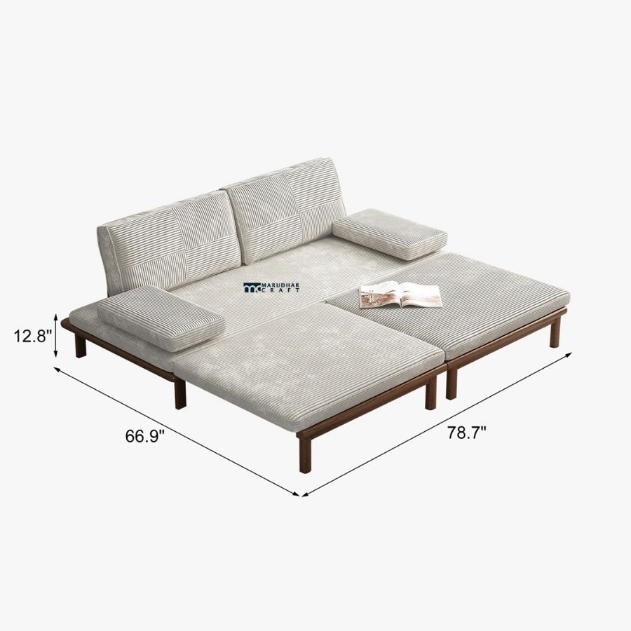 Modern Wooden Convertible Lounge Sofa with Fabric Cushions