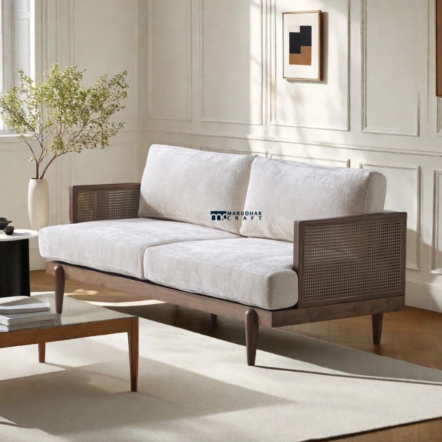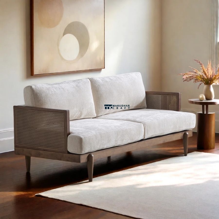 This modern 3-seater sofa blends minimalist design with natural warmth. Featuring a solid wooden frame and soft fabric upholstery, it offers clean lines, plush seating, and a refined look that complements contemporary and Scandinavian-style interiors.
