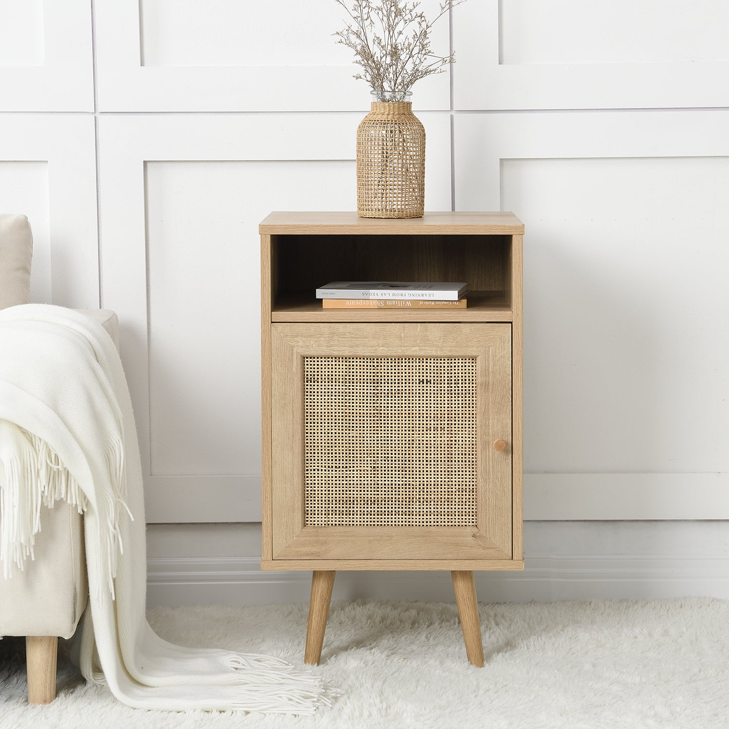 Bring a touch of nature into your bedroom with the Natural Rattan Bedside Table. Handcrafted from durable rattan in a soothing natural color, this 1-door table combines traditional weaving artistry with functional storage, making it an ideal blend of style and practicality.