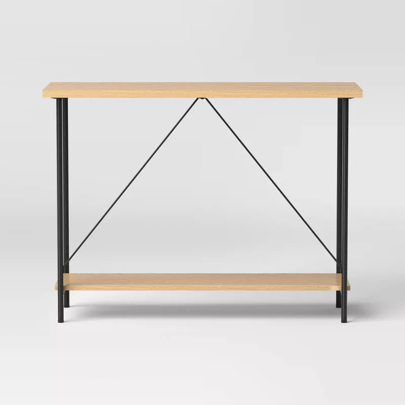 Natural Wood and Metal Console Table for Entryway and Living Room