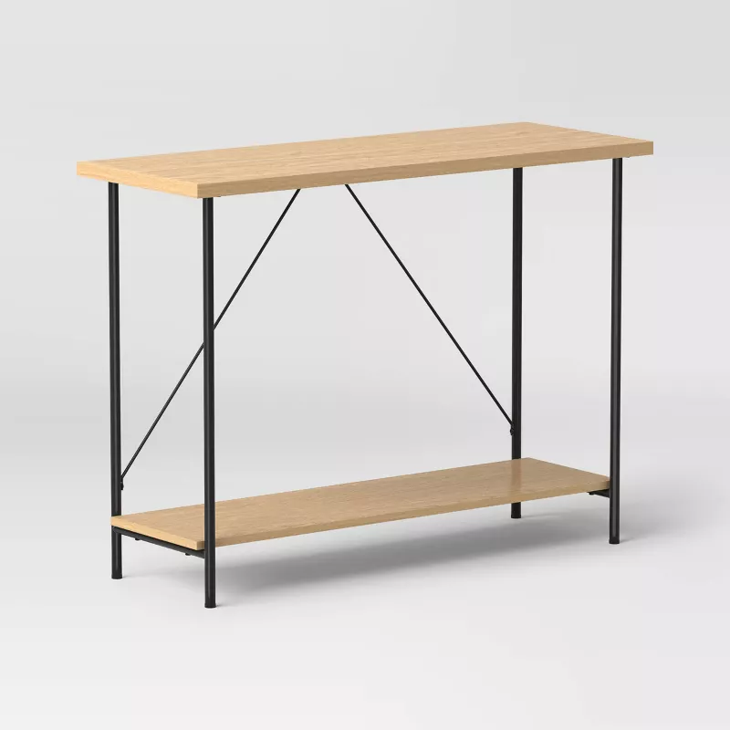 Stylish console table with a natural wood top and strong metal frame