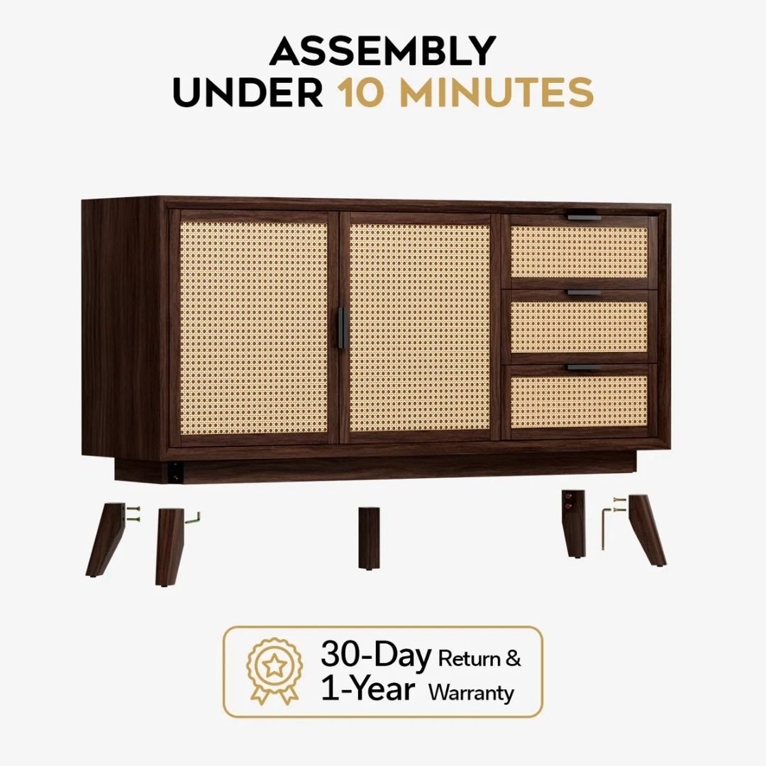 - Customizable dining room sideboard: The credenza features adjustable and removable shelves, along with three full-extension drawers offering ample storage space for all your dining room essentials.