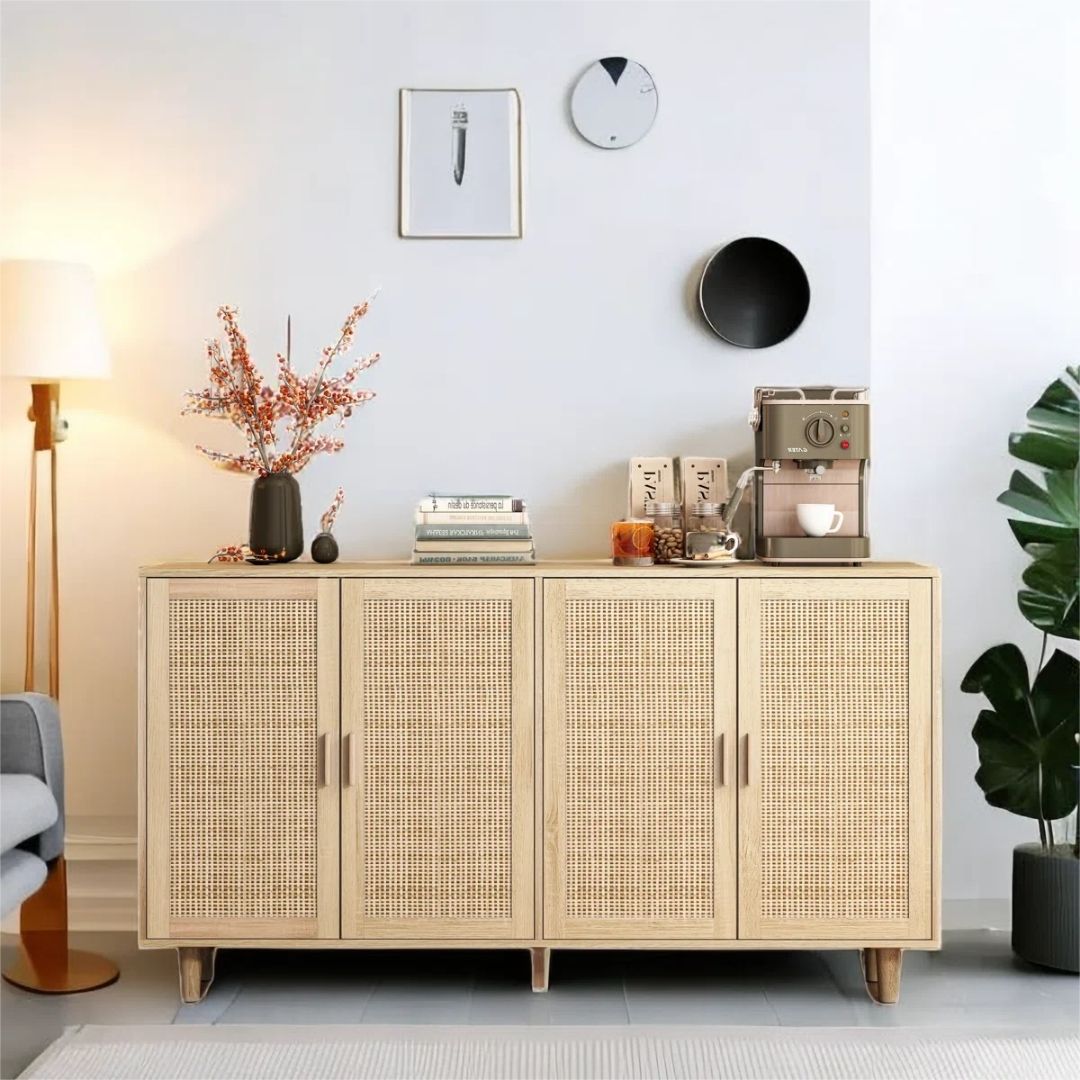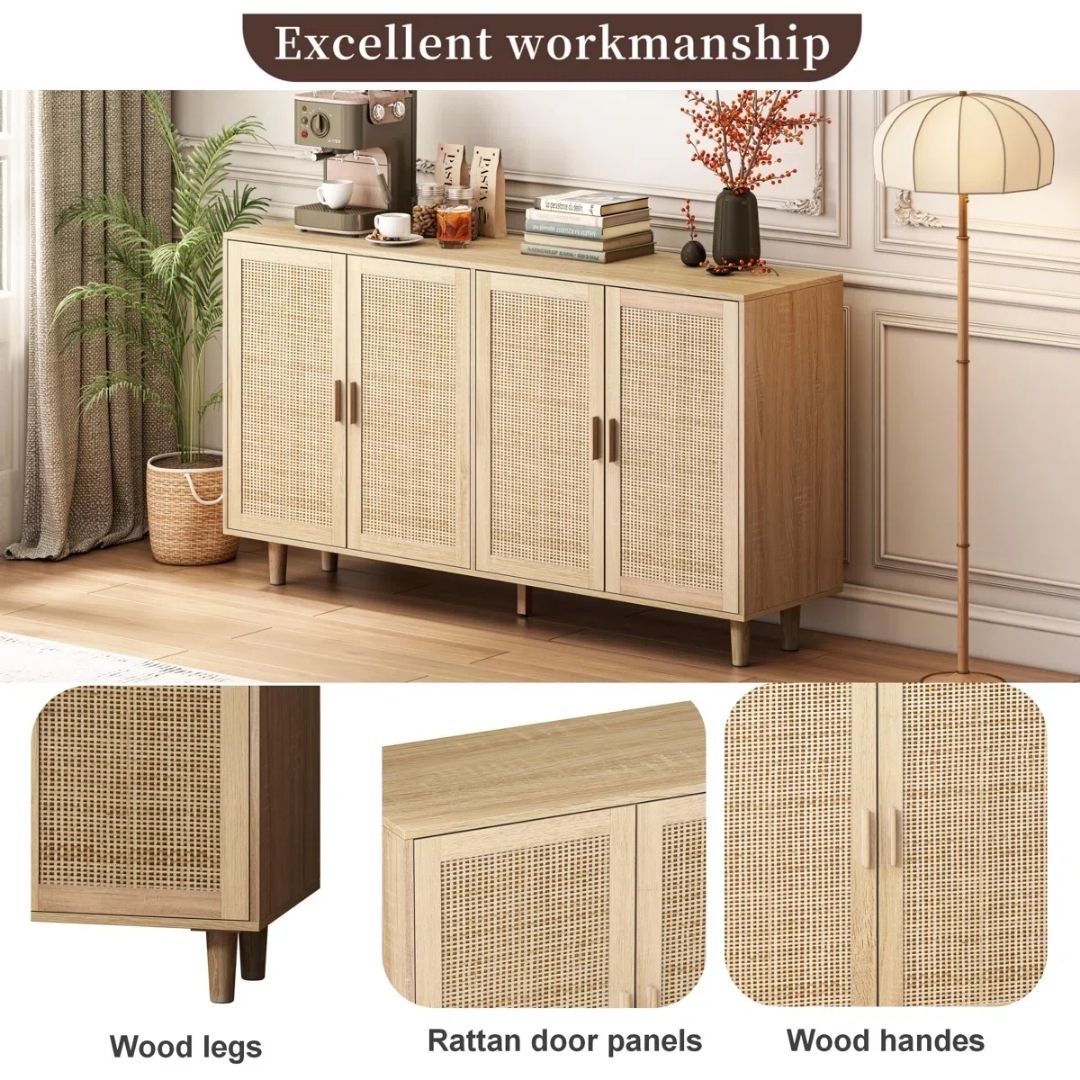 - Rattan Door Panels: The unique rattan door panels bring a warm and natural aesthetic feeling. Rattan door panels not only give the sideboard a light appearance, but also ensure the ventilation and dust protection of items.